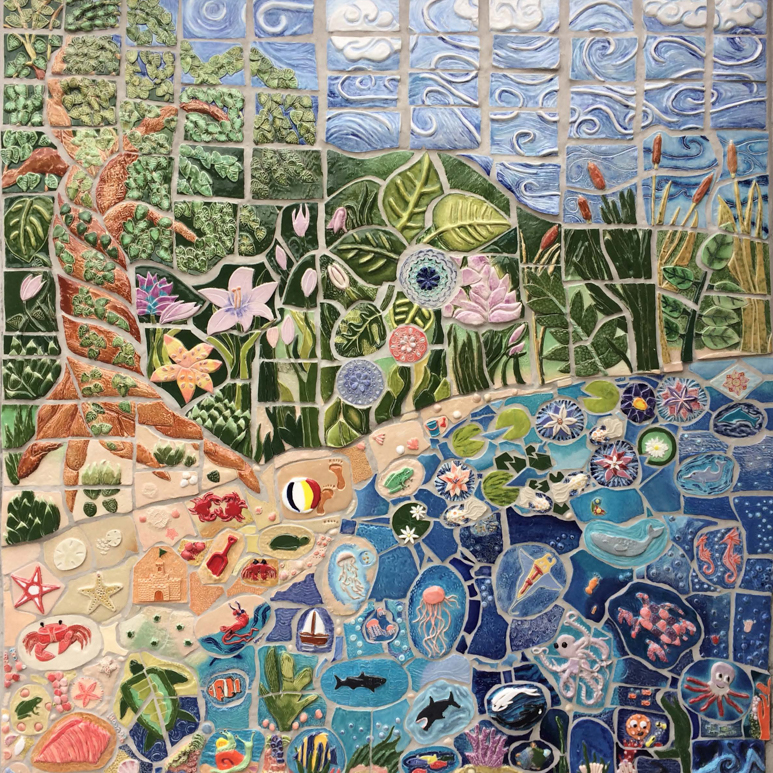 This mural was created using Mayco Stroke & Coat glazes at cone 6.