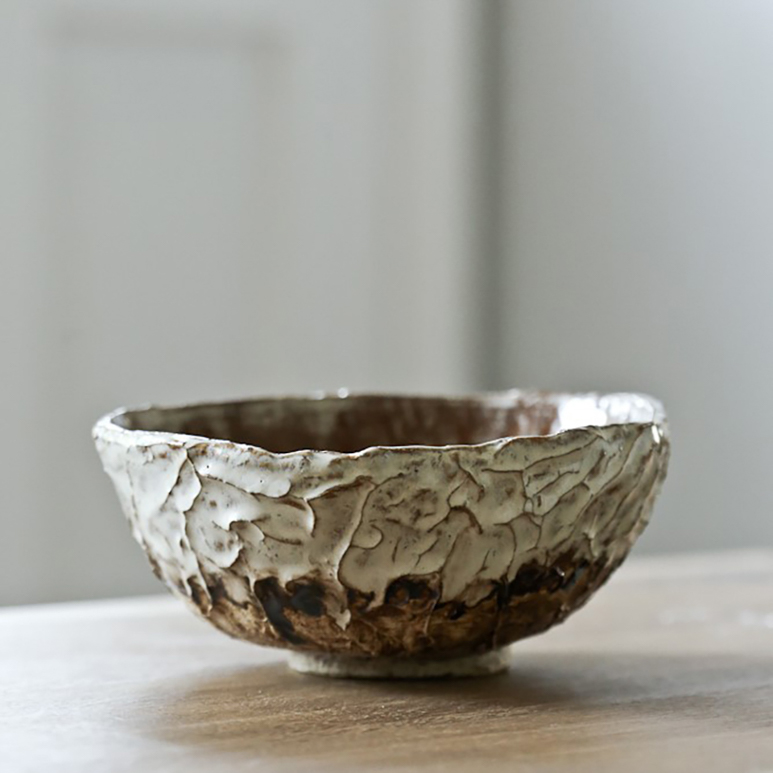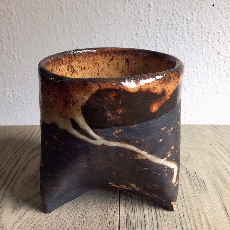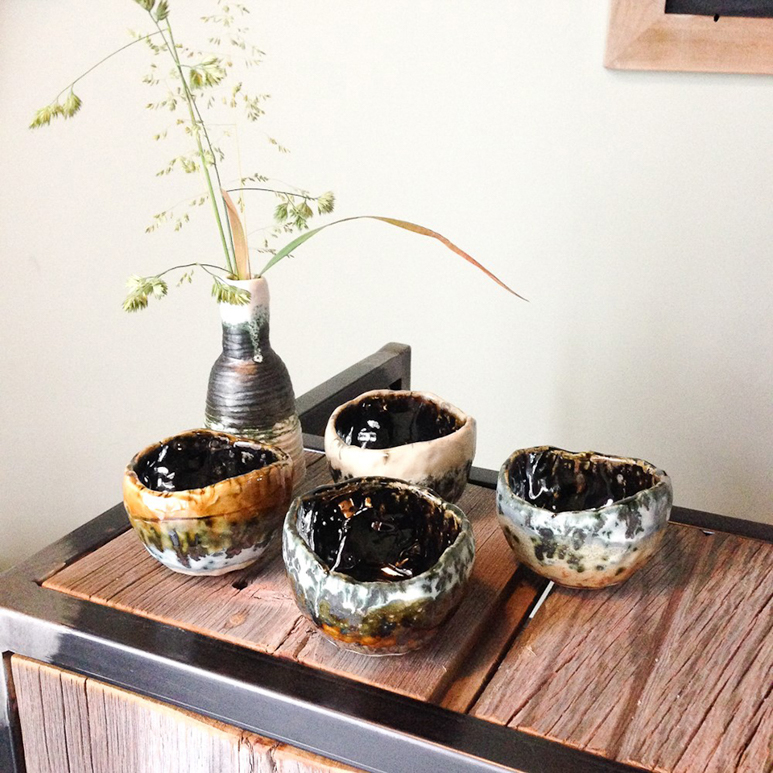 I’m inspired by wabisabi rustic things that look like they’ve been unearthed. Which is funny since I gravitate toward stark white unmarred minimalist objects, but that’s not what feels right when I’m creating my pieces; they tend to be serene, quiet, and grounding and I love them for their flaws. Imperfection gives life and personality to handcrafted wares and I like to work with the materials I have at hand – the nature of the clay, a few simple favorite tools, and just see what direction the piece takes naturally.  I started with a desire to make chawan (Japanese tea bowls) and yunomi (cups) and I’d watched a documentary in which a tea master mentioned how each of the antique chawan tells a story and the more you look at one, the more you see. I spend hours with each bowl and I feel like a little bit of however I felt at the time is reflected in each one, telling its own little story that I hope someone enjoys reading one day.
