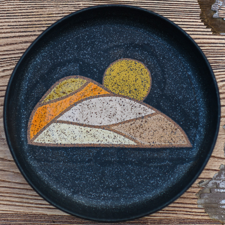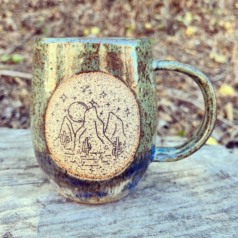 Mayco products have been a great fit for me. I use auto detail tape to create designs on my pieces. The Mayco Stroke and Coat line has been perfect for those projects because the glazes don’t run and the colors are so predictable. I primarily work with speckled clay and I love the look of the speckles coming through the colors. It has a very earthy effect. I think I have almost every color!