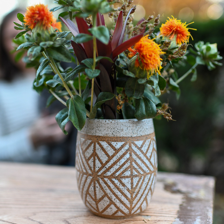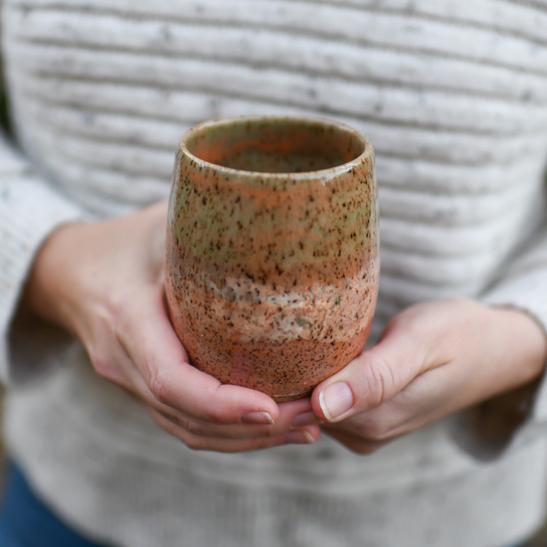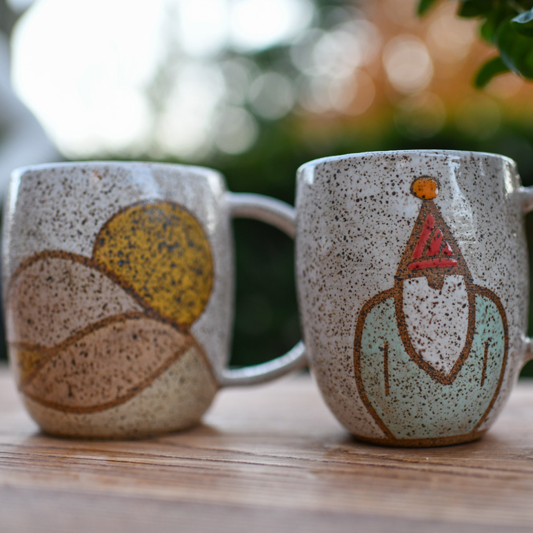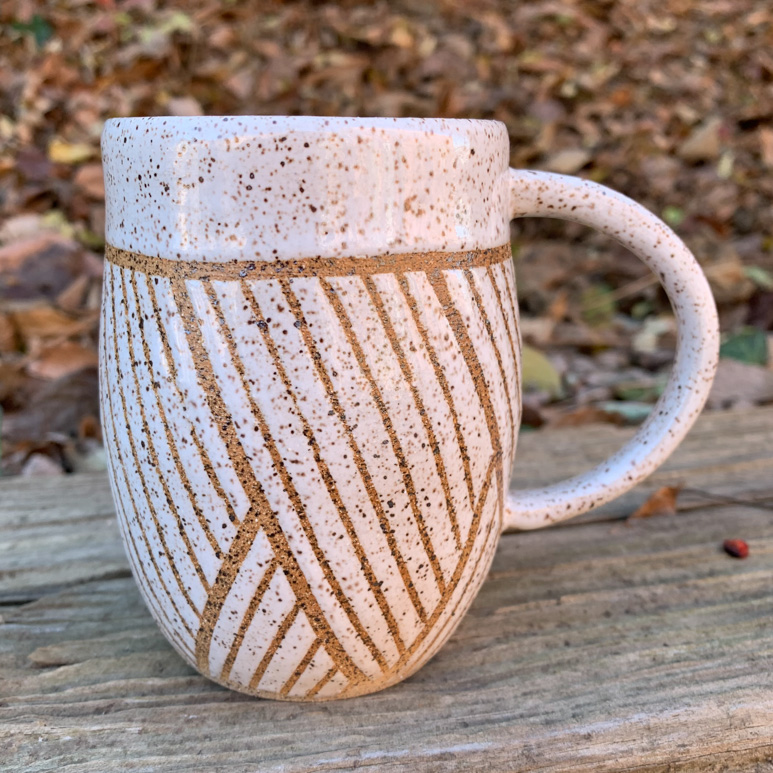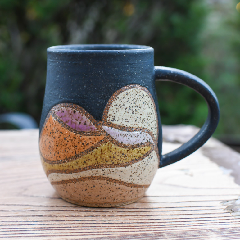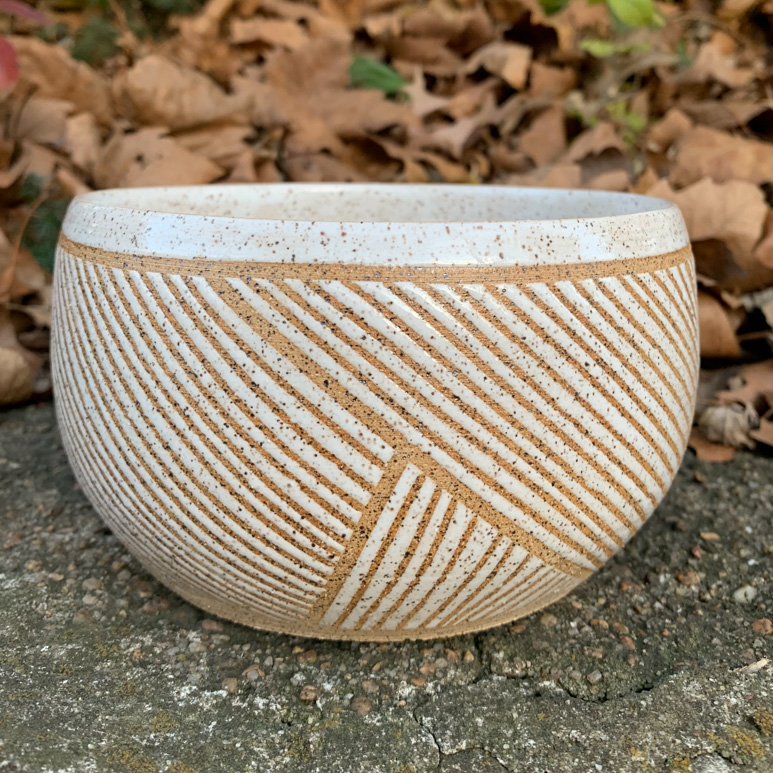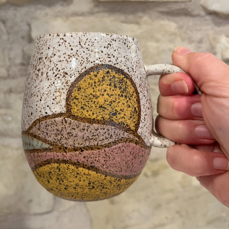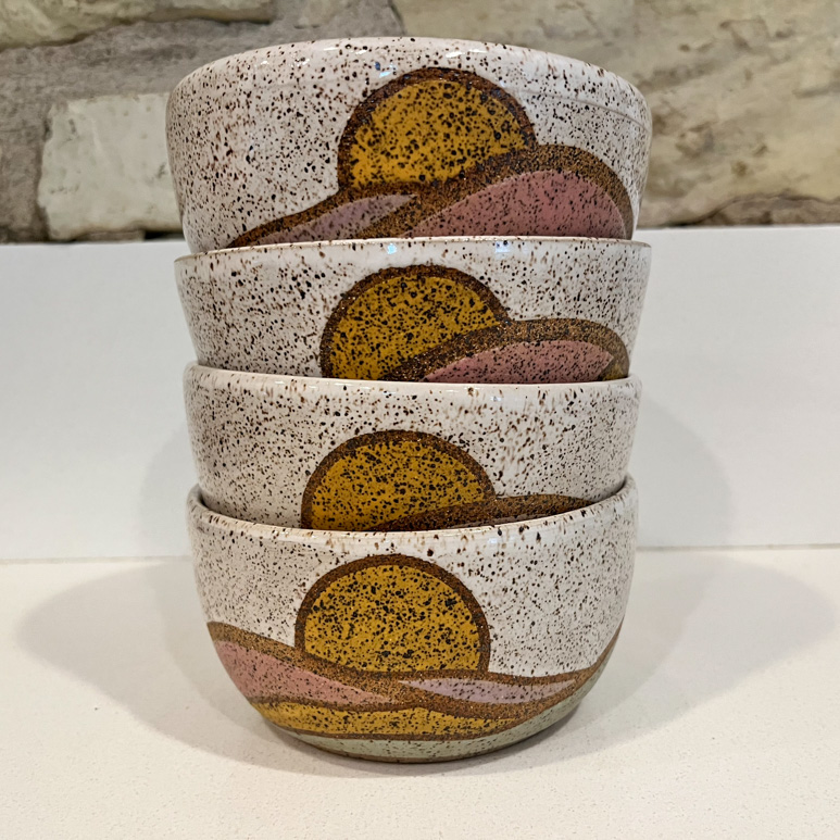 I was first drawn to ceramics in high school. I loved the earthy feel of the clay, as well as the excitement of not knowing what you would find when you opened the kiln. Currently, I enjoy the meditative nature of throwing pots. I like to sit down at the wheel and put on a good podcast or some relaxing music. I’ve read that gardening can be a mood booster just from having your hands in the soil. Clay has the same effect on me. It also makes me feel good to be able to give people handmade gifts. It’s fun to open up your cabinet and see lots of little pieces of art, and I enjoy being able to pass that feeling on to other people.