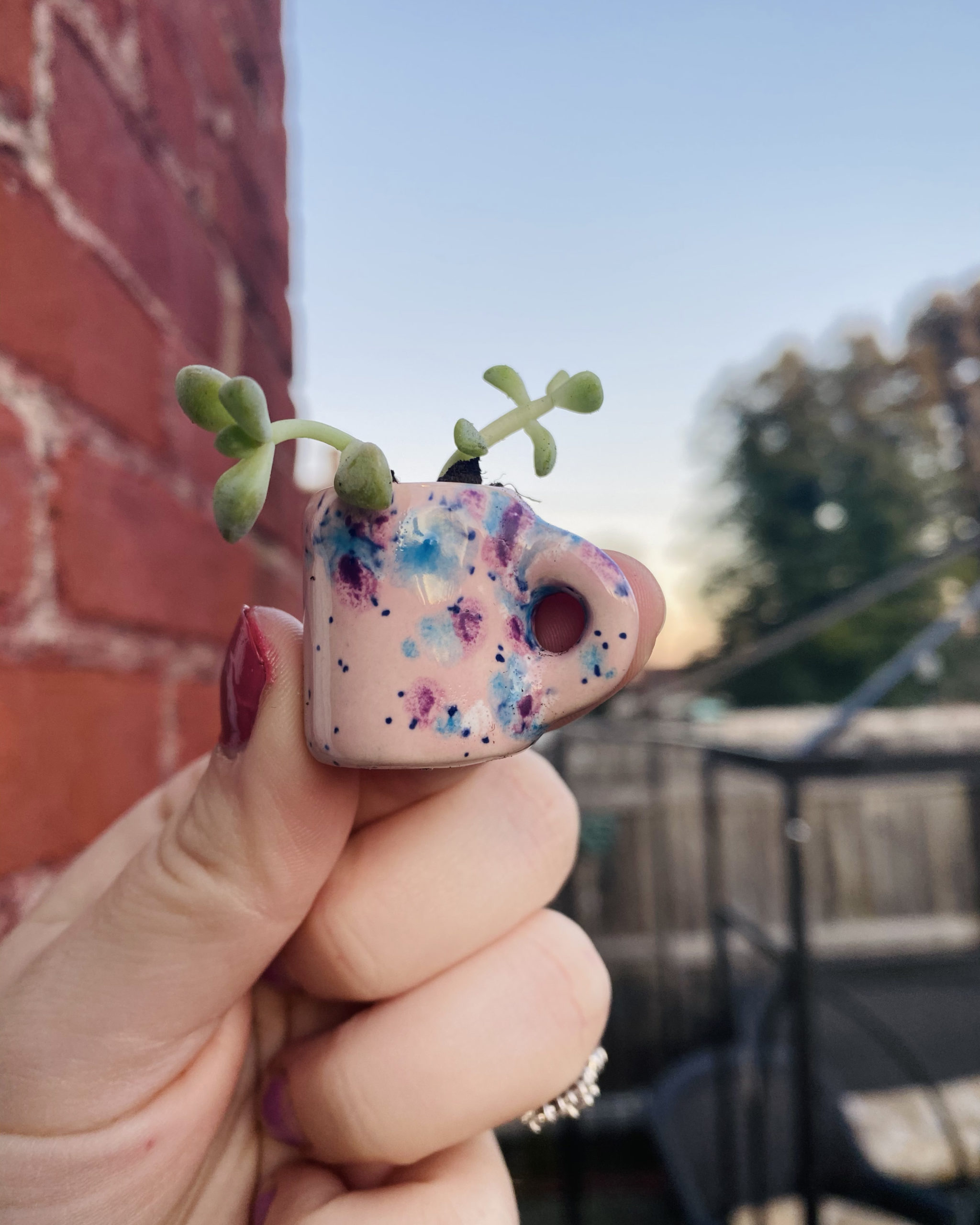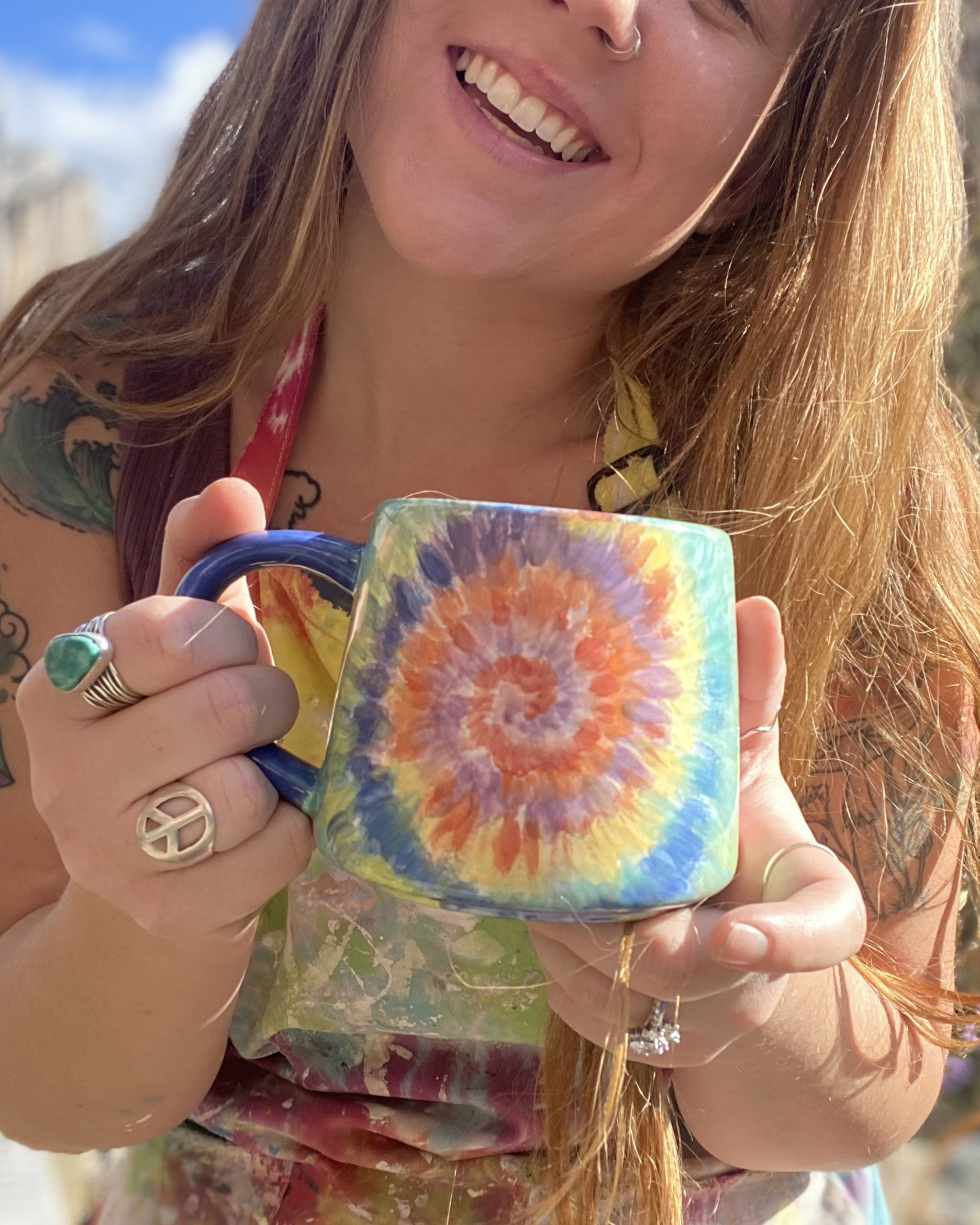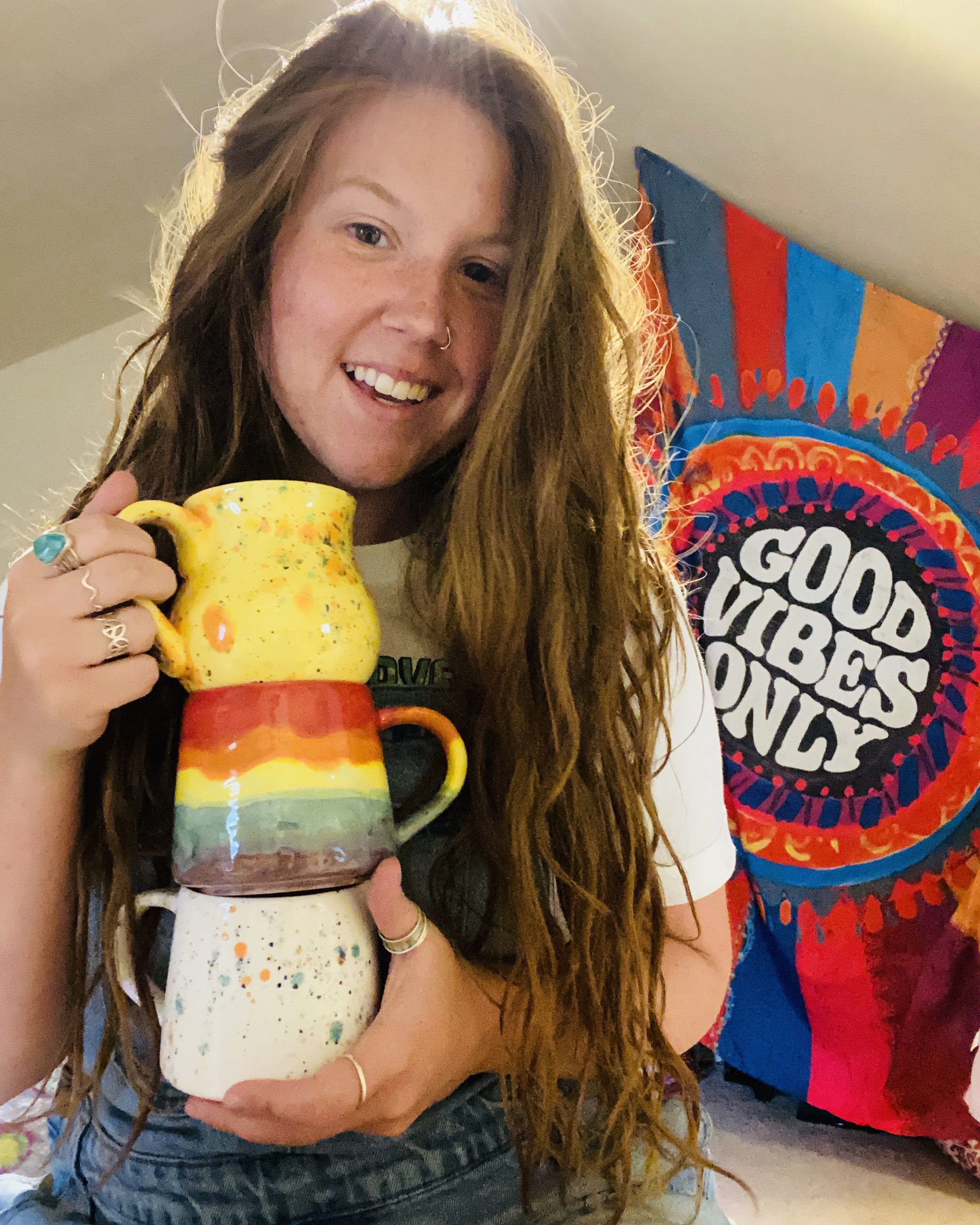 The first influential experience on my career was in 2017, when I decided to take pottery painting from a hobby and test it out at a craft show. I live in a river town, so I am very close to a bridge and every year we have the Bridge Bust – a craft show that lines the entire bridge with vendors! It was so much fun, I got to see and hear the reactions of customers when walking into my stand. I did amazing that day, made a lot of money, and that is when I realized I had a REAL thing going for me. A more recent experience would be this year when I created my Rainbow Mug. It really took off on Instagram and soared my Etsy. It was the first mug I painted that I felt really looked like I used high fire glazes using low fire glazes!