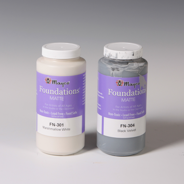 Some of my favorite Mayco products are the Foundations Matte Glazes. I love the smooth surface is gives the work and it is very easy to apply. Matte glazes take away the distraction of light reflections and glare that comes from using glossy glazes. This allows for the viewer to focus more on the form of my work and enhances it’s smooth and angular qualities.
