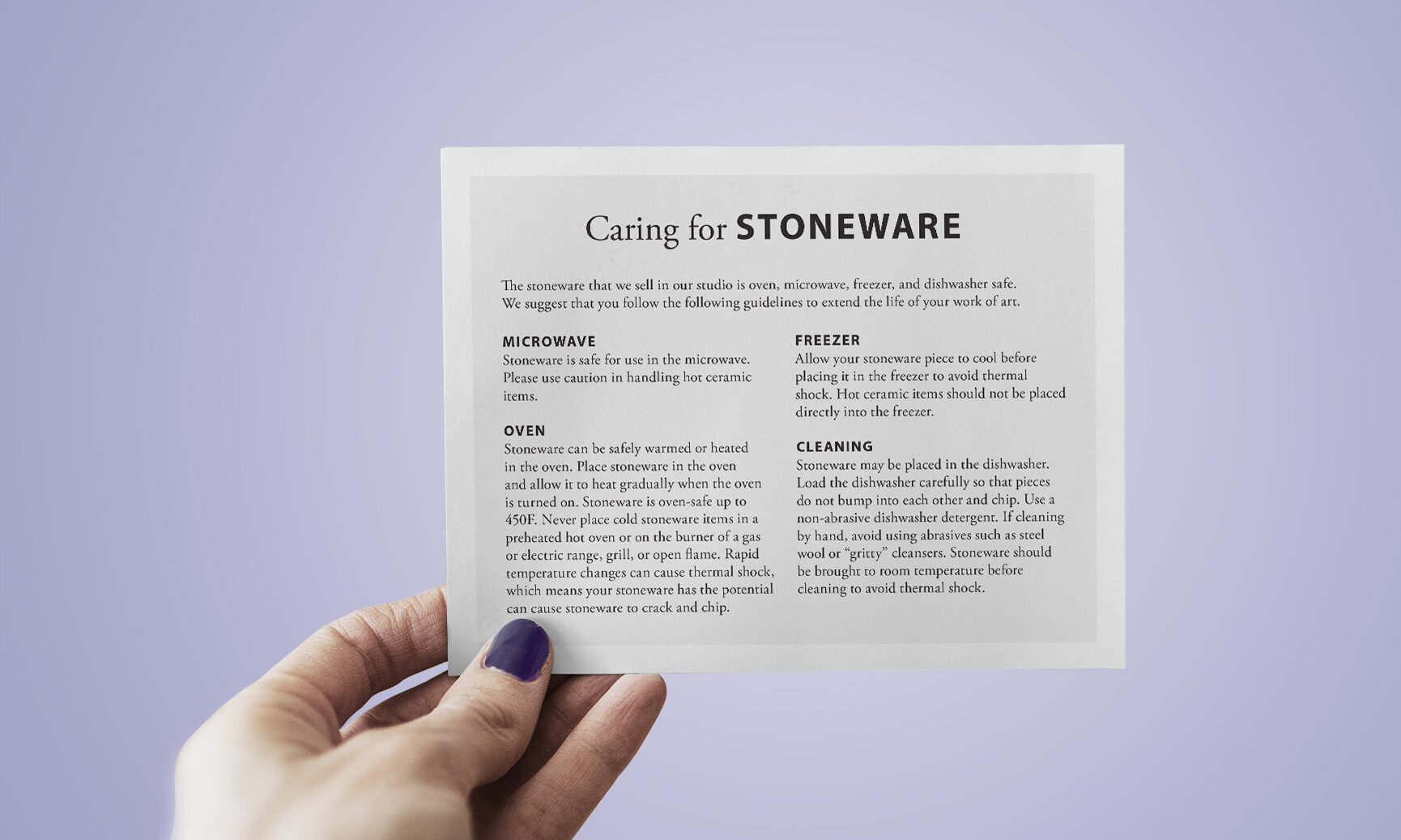 Stoneware Care Card