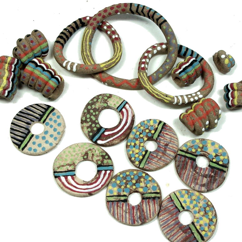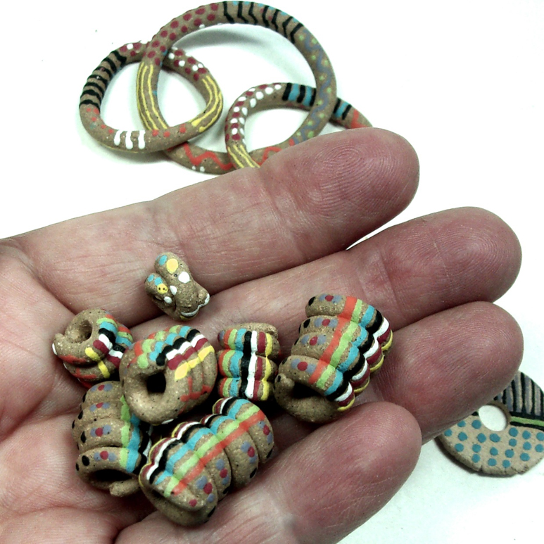 My ongoing exploration into engobes, underglazes & terra sigillata has helped me discover new ways to generate colorful patterns, textures and finishes on all sorts of clay bodies. Whether shaping simple clay beads or fine tuning a transfer-to-surface process, I enthusiastically explore ALL my clay options, asking myself ‘what if’ every time I’m confronted with clay and its possibilities. But once techniques are mastered it is time to really listen to the clay…