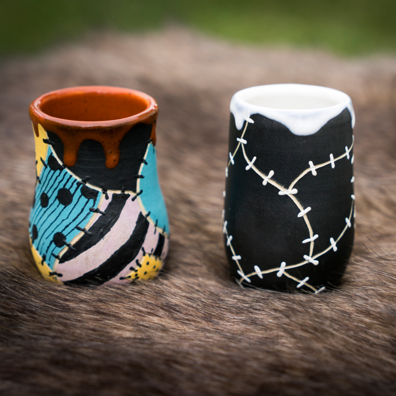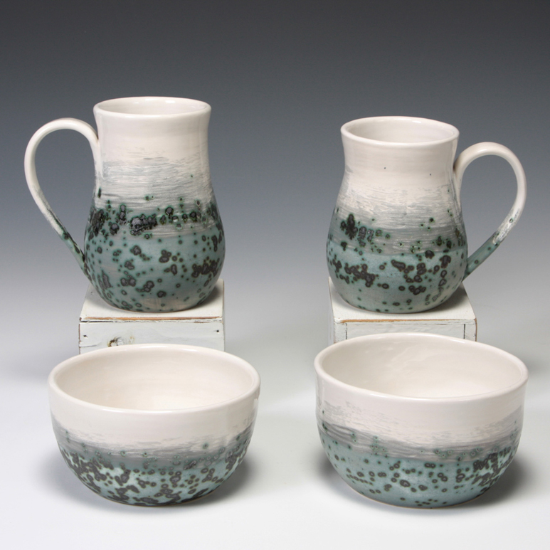 I never really had one art medium I preferred over another, and continued to explore throughout high school and in college. When I was in high school, I spent most of my time with drawing, painting, theatre tech, and photography. Once I got to college, I had access to even more mediums and fantastic professors who were happy to share their knowledge. At the University of Akron, I tried almost every medium that was offered. I didn’t take my first ceramics course until my 3rd year at UA and when I tried throwing, I struggled, but I also really liked it. I continued to take throwing for both semesters before I graduated and I had the opportunity to sell my work at The Ohio Renaissance Festival. I pushed myself to keep practicing and I spent hours in the studio throwing the same form as well as experimenting with other forms and surface textures and finishes.