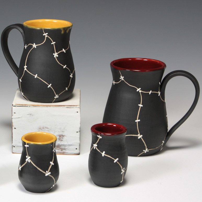 Much of my inspiration comes from nature as well as my personal interests. I carve tree bark textures, winding ivy, stitches, and spiderwebs to finish the surfaces of the pieces I throw. I also draw inspiration from other artists and try to take that inspiration and make it my own.