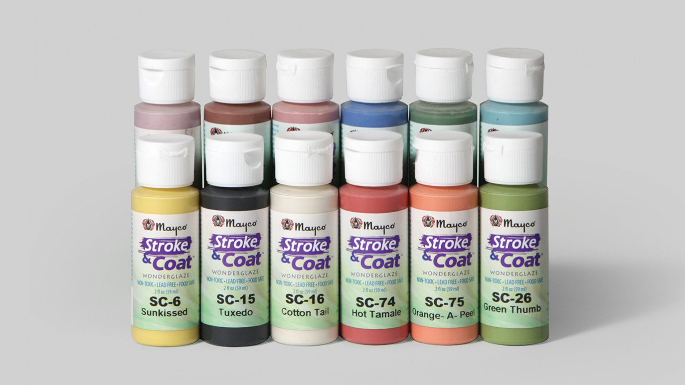 Mayco’s extensive fired color glaze assortment includes numerous product lines with a wide variety of colors, finishes, performance characteristics, and textures for firing range from cone 06 to cone 10 in a kiln as well as overglazes.