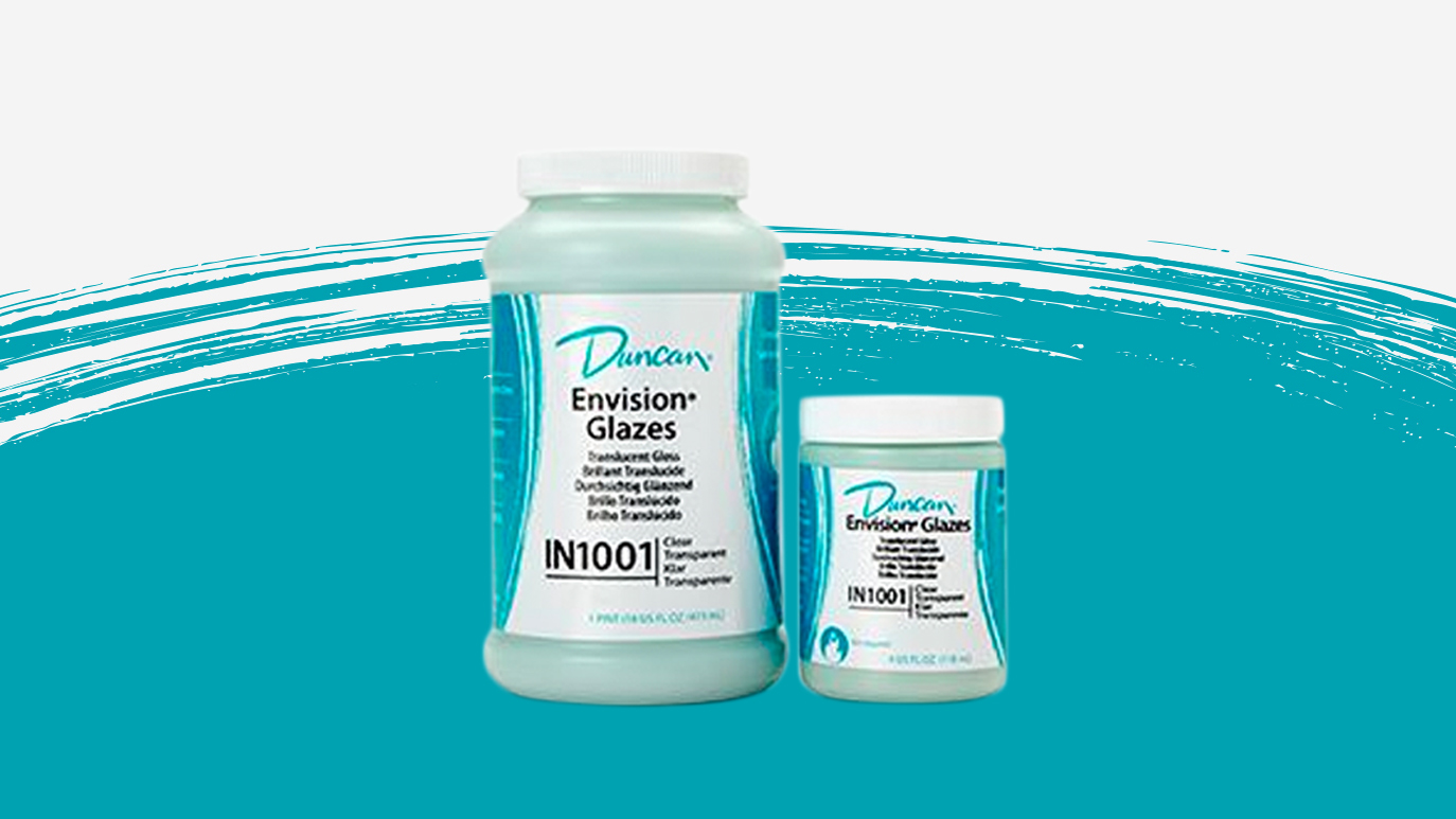 Duncan Envision® Clear glazes are made to give consistently true-color finishes and outstanding brushability for ease of application. Envision® clear glaze is overglaze compatible. Envision® Clear Glaze is available in brush-on (IN1001) formula.