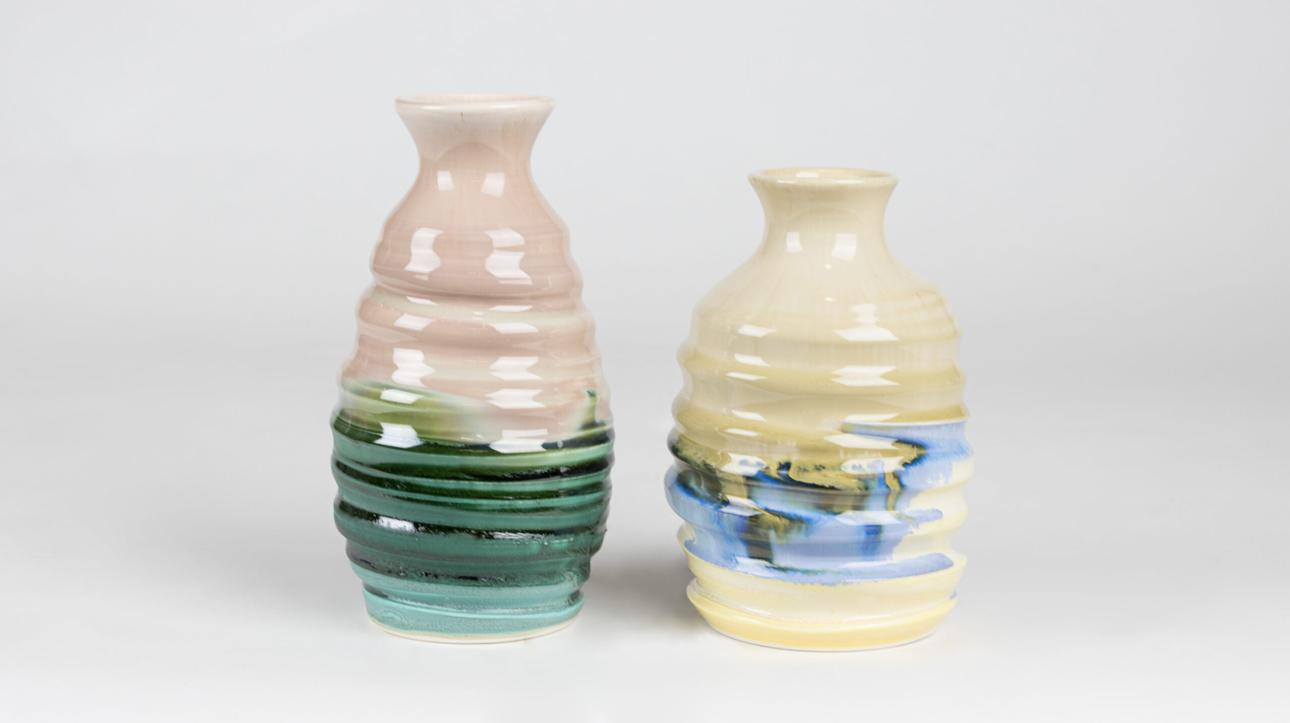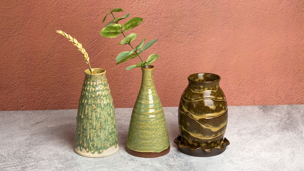 When using Elements™ on the outside of a vase or cylinder, we recommend using Foundations® opaque, Foundations® sheer, or a clear glaze on the inside. Using Stroke & Coat™ may cause the piece to crack due to the stiffness of the glaze.