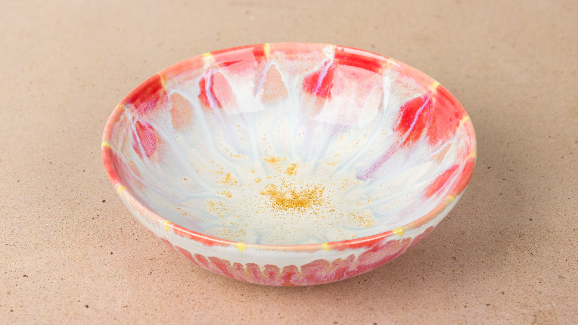 While formulated for cone 06/05 use, many of the Elements™ and Elements™ Chunkies glazes perform beautifully at higher temperatures. Refer to the individual color label for cone 6 firing performances. As Elements™ tend to flow at higher temperatures, the orientation at which your glazed ware is fired (flat vs vertical) can greatly impact the look. Due to the movement of the glaze, we recommend limiting the glaze on the bottom third of a vertical piece to avoid running off the ware. We recommend testing to determine color, surface characteristics and movement prior to use.