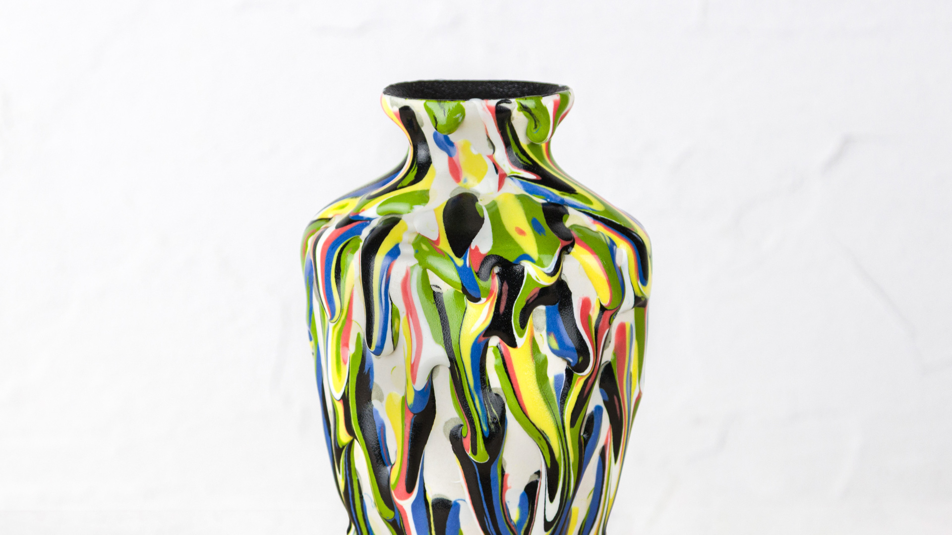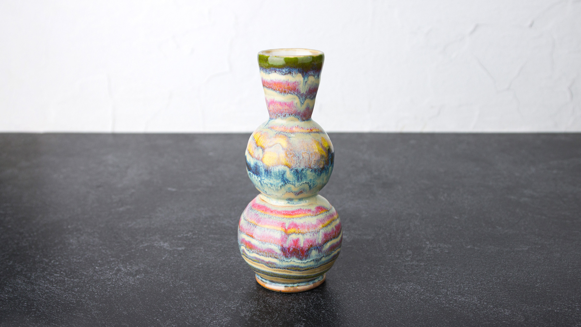 Melt Gloop can be layered and marbled with other Melt Gloop colors to create stunning visual effects. Allow the first layer to set slightly (looses its glossiness) before adding the next. This technique enhances both the texture and vibrancy of your finished piece. The more product you apply, the more the glaze will run.