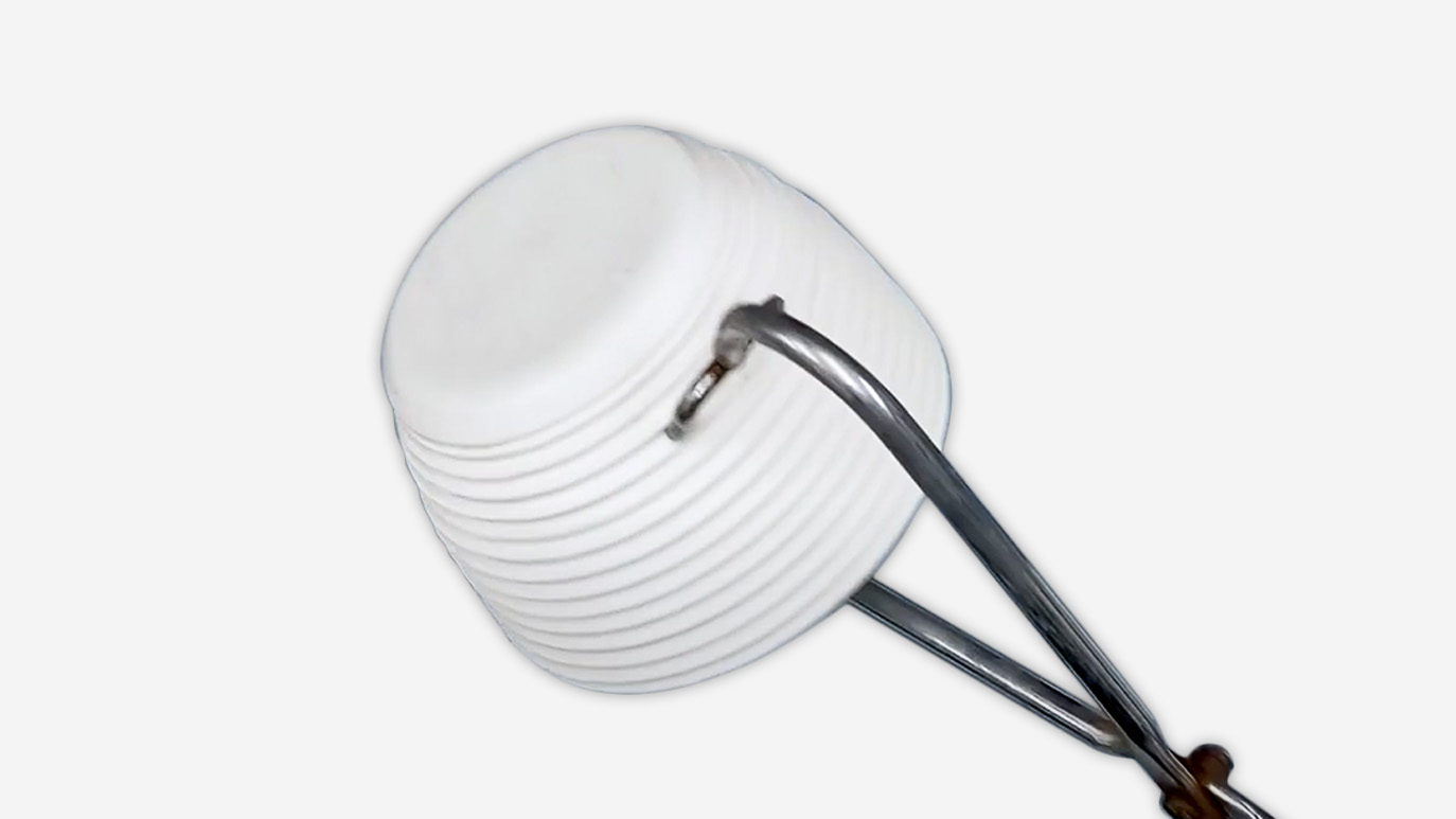 Holding the viscosity cup in one hand and a stopwatch in the other submerge the cup into the glaze. Start the stopwatch the moment the bottom of the cup clears the surface of the glaze. When the glaze stream breaks, stop the clock. Cup should be empty or nearly empty.