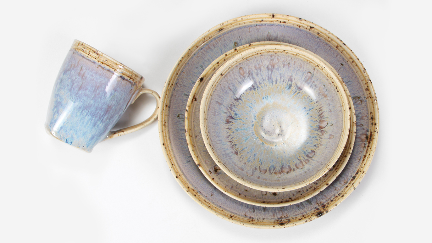Mayco’s Stoneware Classic and Matte glazes are great for layering with other glazes. There is a large variety in performance amongst these glazes, some that we recommend for their performance and compatibility in combinations are SW-104 Black Walnut, SW-106 Alabaster, SW-108 Green Tea, SW-110 Oyster, SW-128 Cordovan, SW-165 Lavender Mist, SW-166 Norse Blue, SW-167 Sand and Sea, SW-168 Coral Sands, SW-172 Macadamia, SW-173 Amber Quartz, and SW-174 Leather. They work great layered both under or over other glazes. Find some inspiration in our stoneware combination gallery.