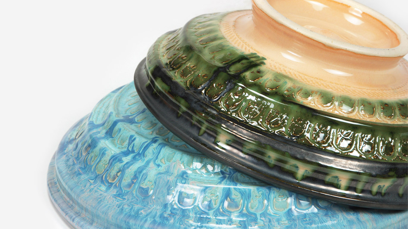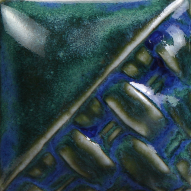 Most Mayco Stoneware glazes will break over textures, revealing secondary colors and shades. These glazes heighten surface details where they gather and pool.