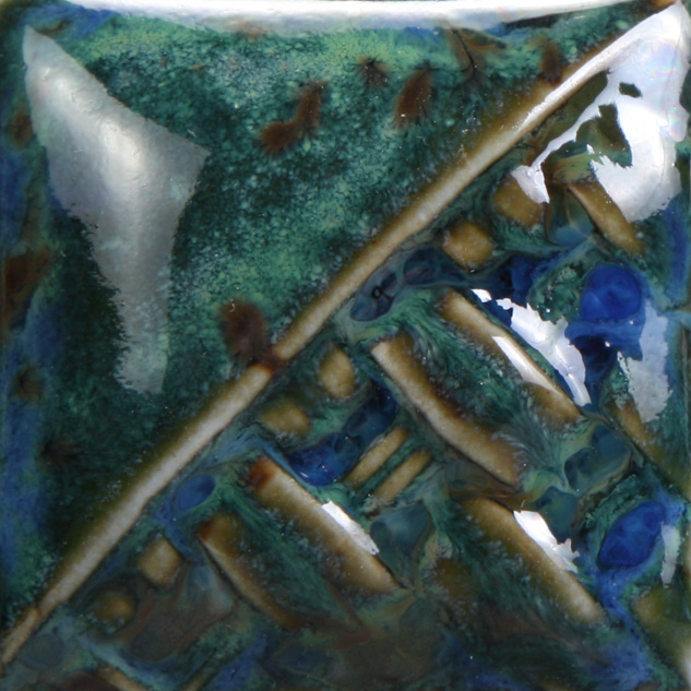 Jungle Gems™ glazes perform at midrange for very interesting results. Crystals will have additional movement at higher temperatures and will act more as a blending agent.