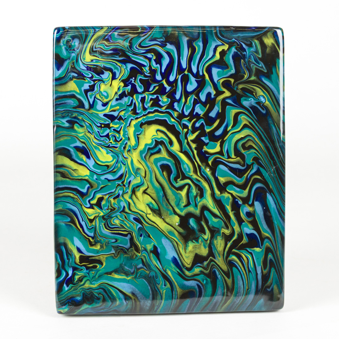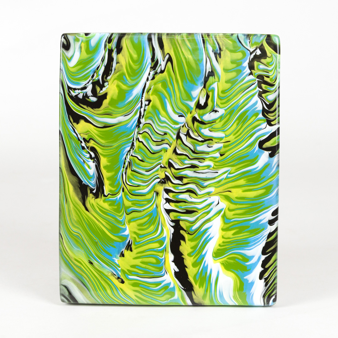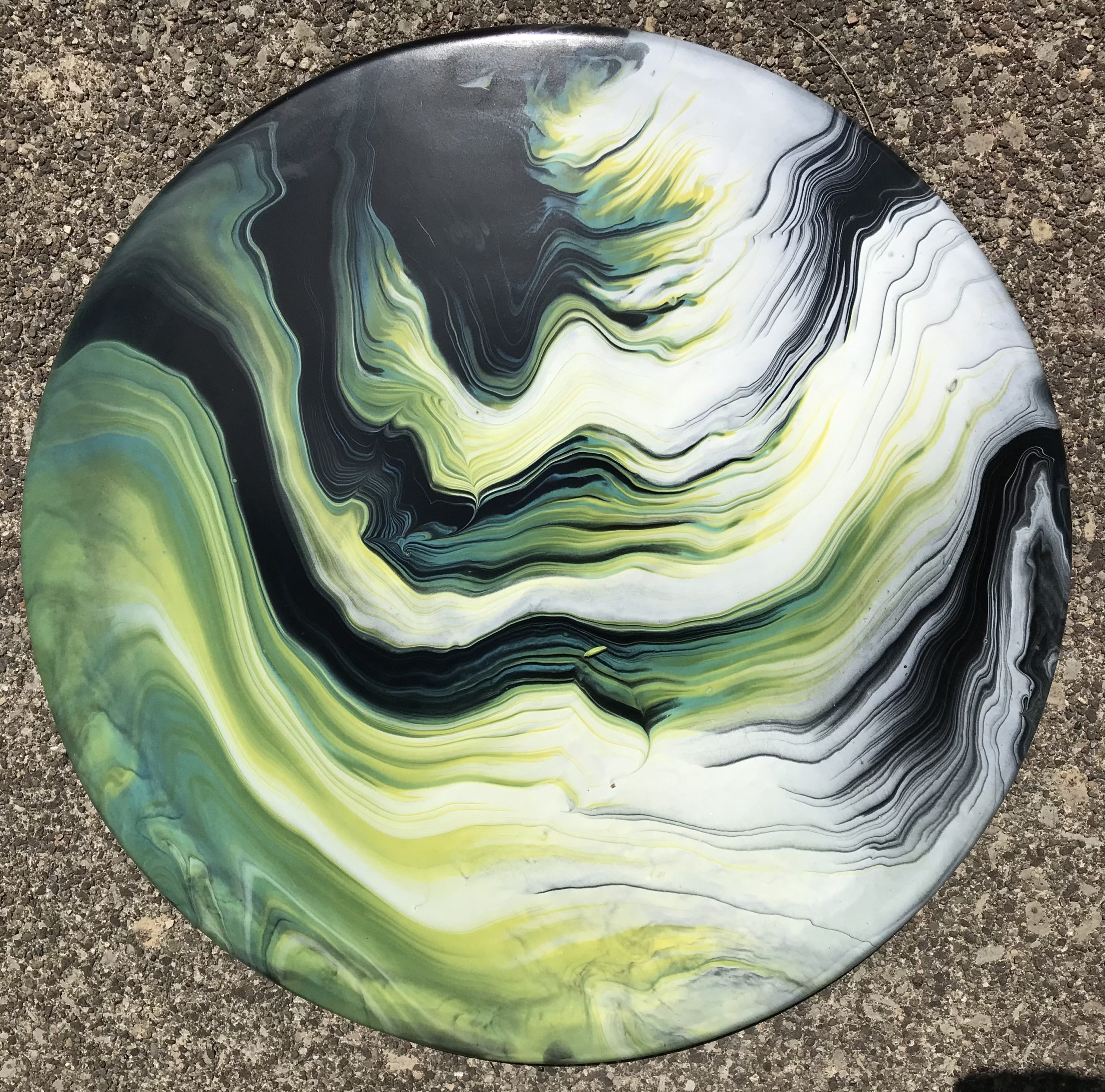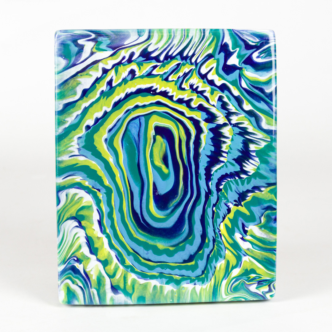 After extensive research including all 198 lessons of Mayco’s lessons, I emailed headquarters and packed up Gavin’s, William’s and my Glaze Pour artworks still pondering “What if?” On April 30th, 2021, Mayco’s CEO/President confirmed controlling multiple colors poured in a single stream that does not become “muddy” is a NEW way of applying the glaze. Mayco desired my lesson plan, testing of other glaze formulas, and filming my demonstrations of the method. I am thrilled to share all the variations tested and the unique elements to Glaze Pour Paintings that in my opinion surpass their predecessors.