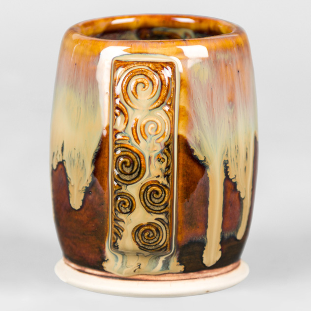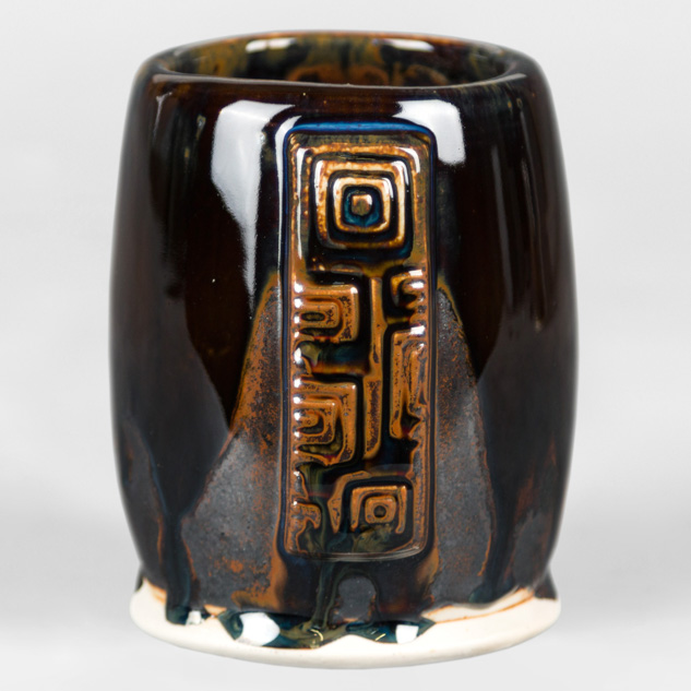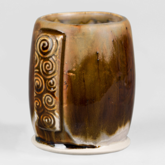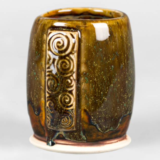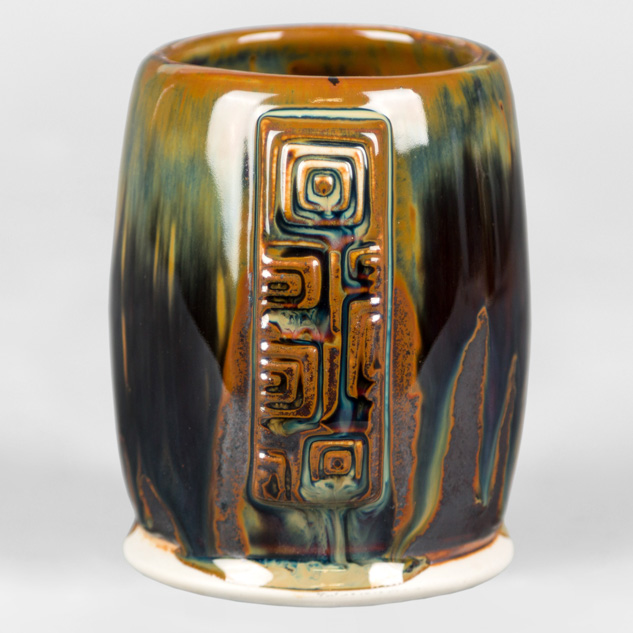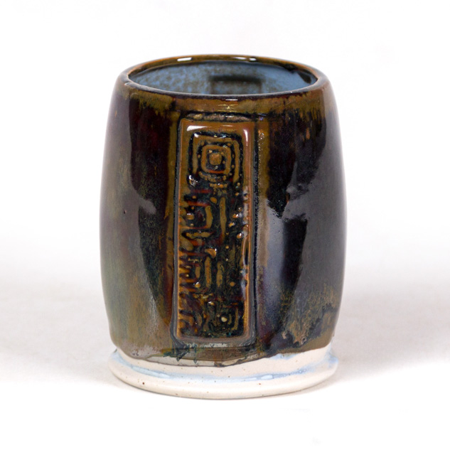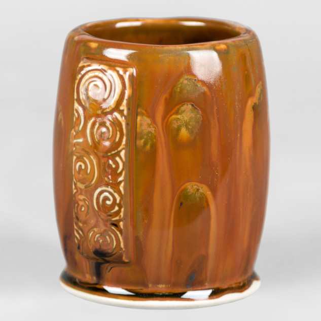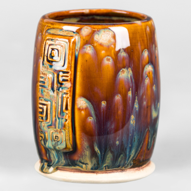 SW-112 Tiger’s Eye over SW-217 Micro Cerulean EG-002 Speckled Buff Engobe