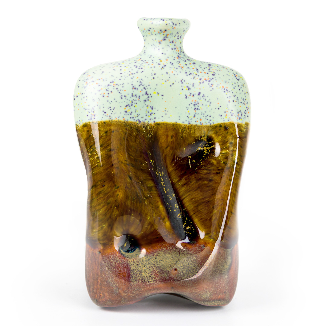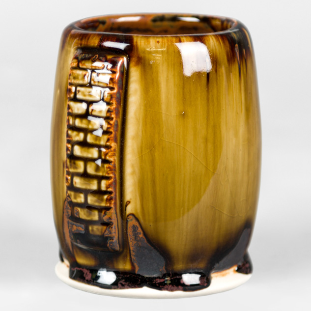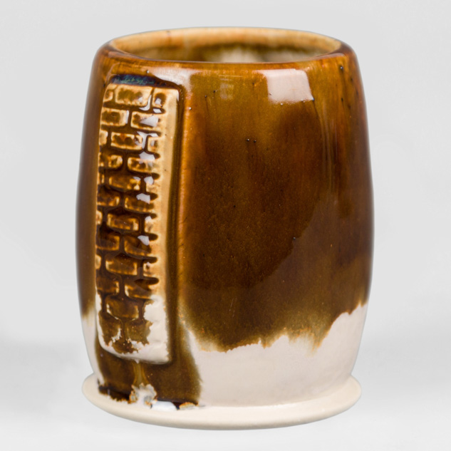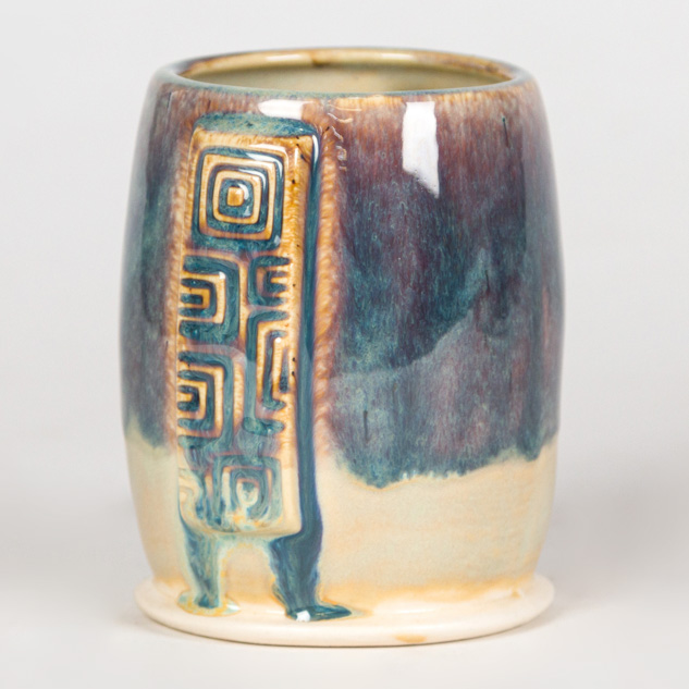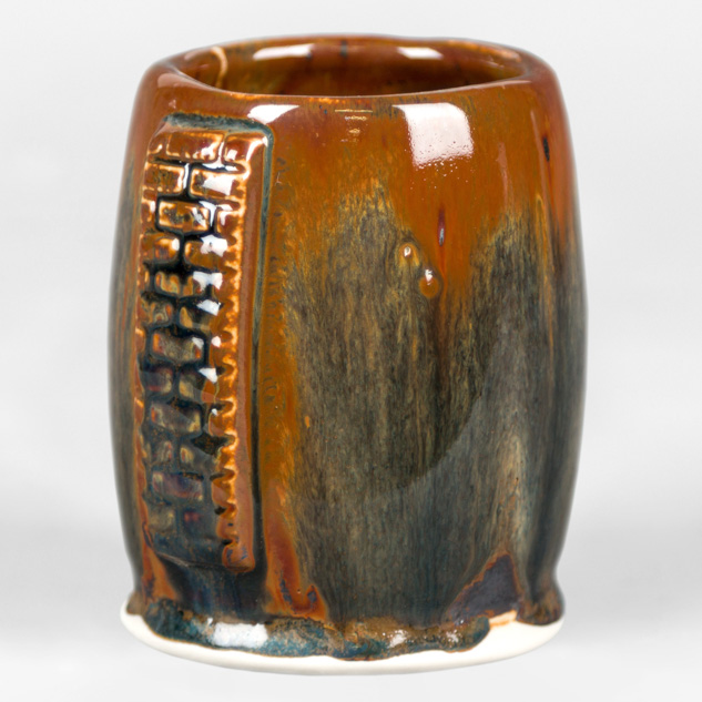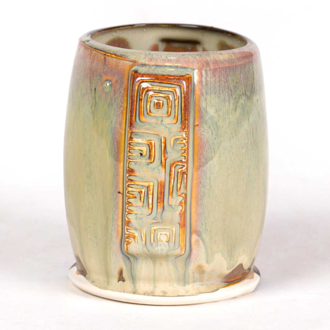 SW-112 Tiger’s Eye over SW-217 Micro Cerulean EG-002 Speckled Buff Engobe