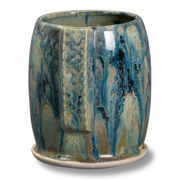 SW-515 Aqua Gloss over SW-146 Aurora Green on EG-003 Brick Red Engobe