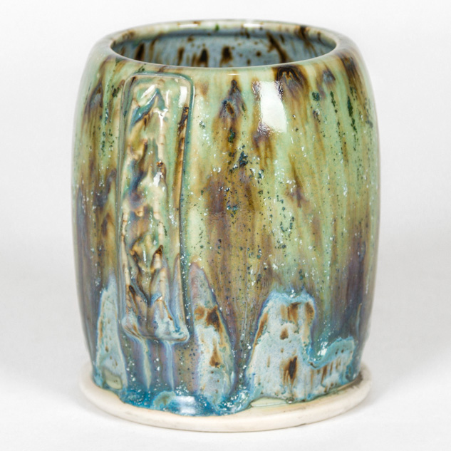 SW-148 Lime Shower over SW-219 Opal Lustre on EG004 Dark Brown Engobe