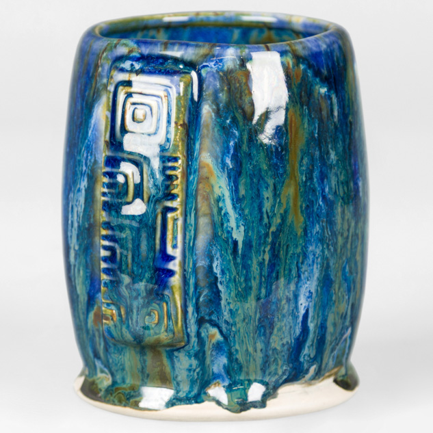 SW-515 Aqua Gloss over SW-150 Celadon Bloom on EG-006 Sparkle Black Engobe