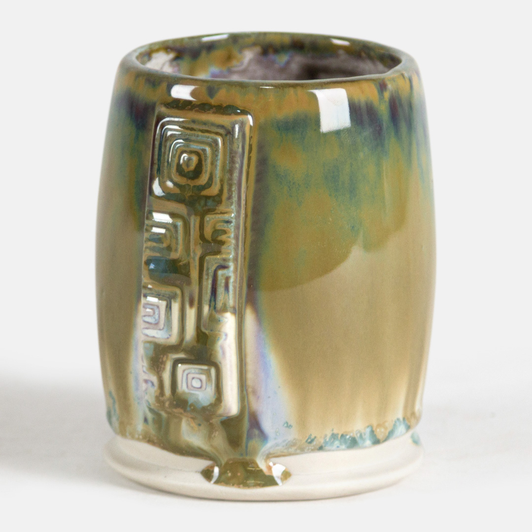 SW-184 Speckled Toad over SW-216 Micro Jade on EG004 Dark Brown Engobe