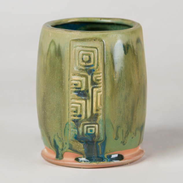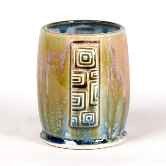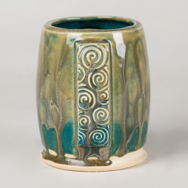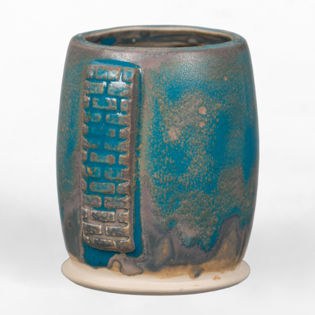 SW-197 Fossil Rock over SW-217 Micro Cerulean on EG-005 Black Engobe
