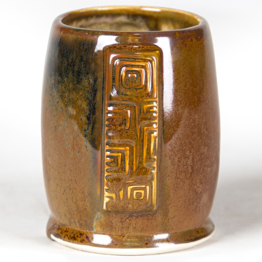 SW-112 Tiger’s Eye over SW-215 Micro Champagne on EG004 Dark Brown Engobe