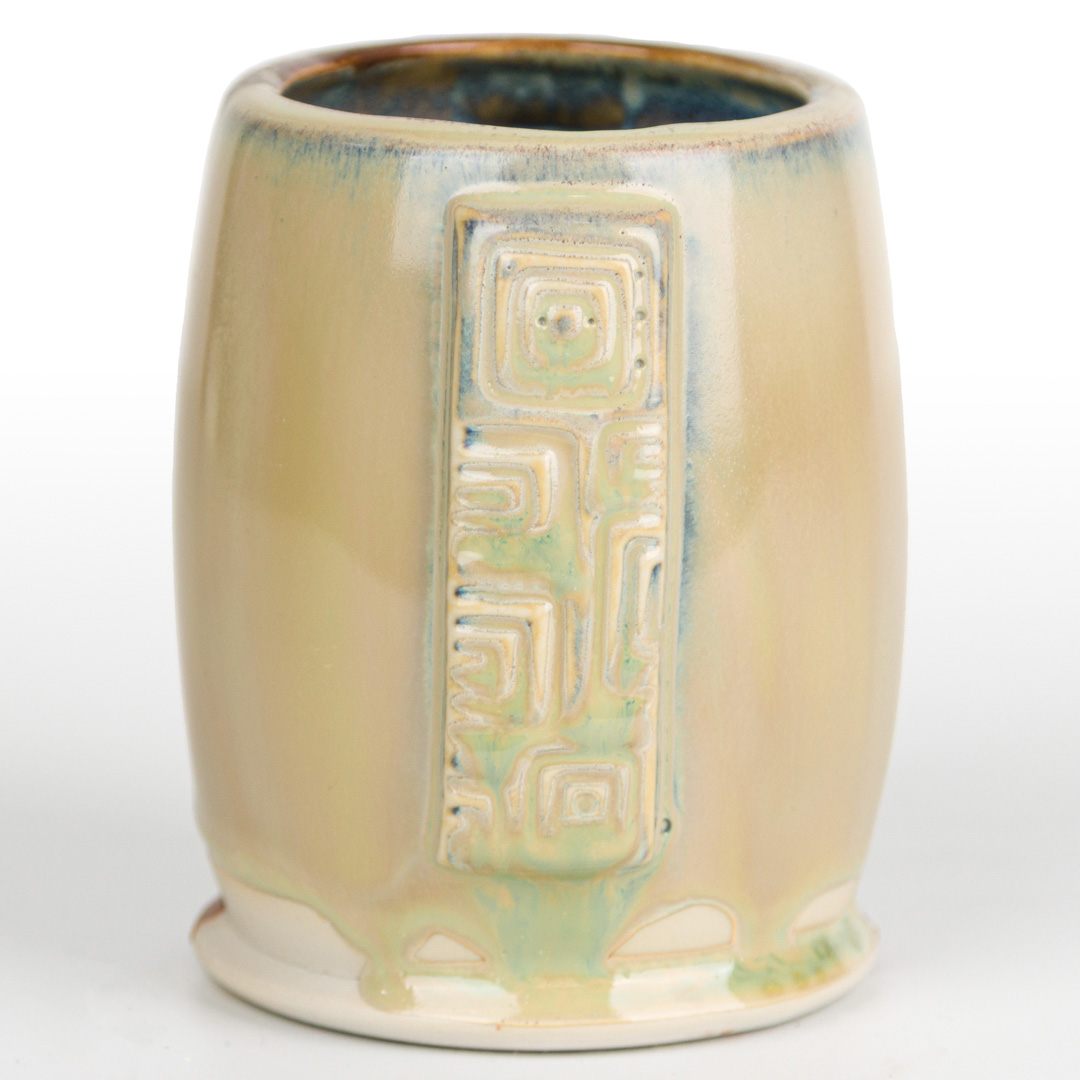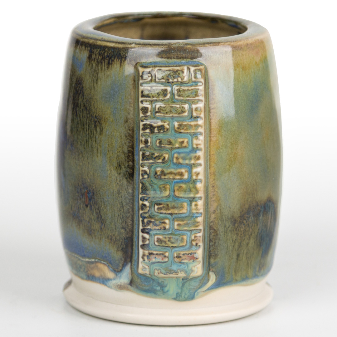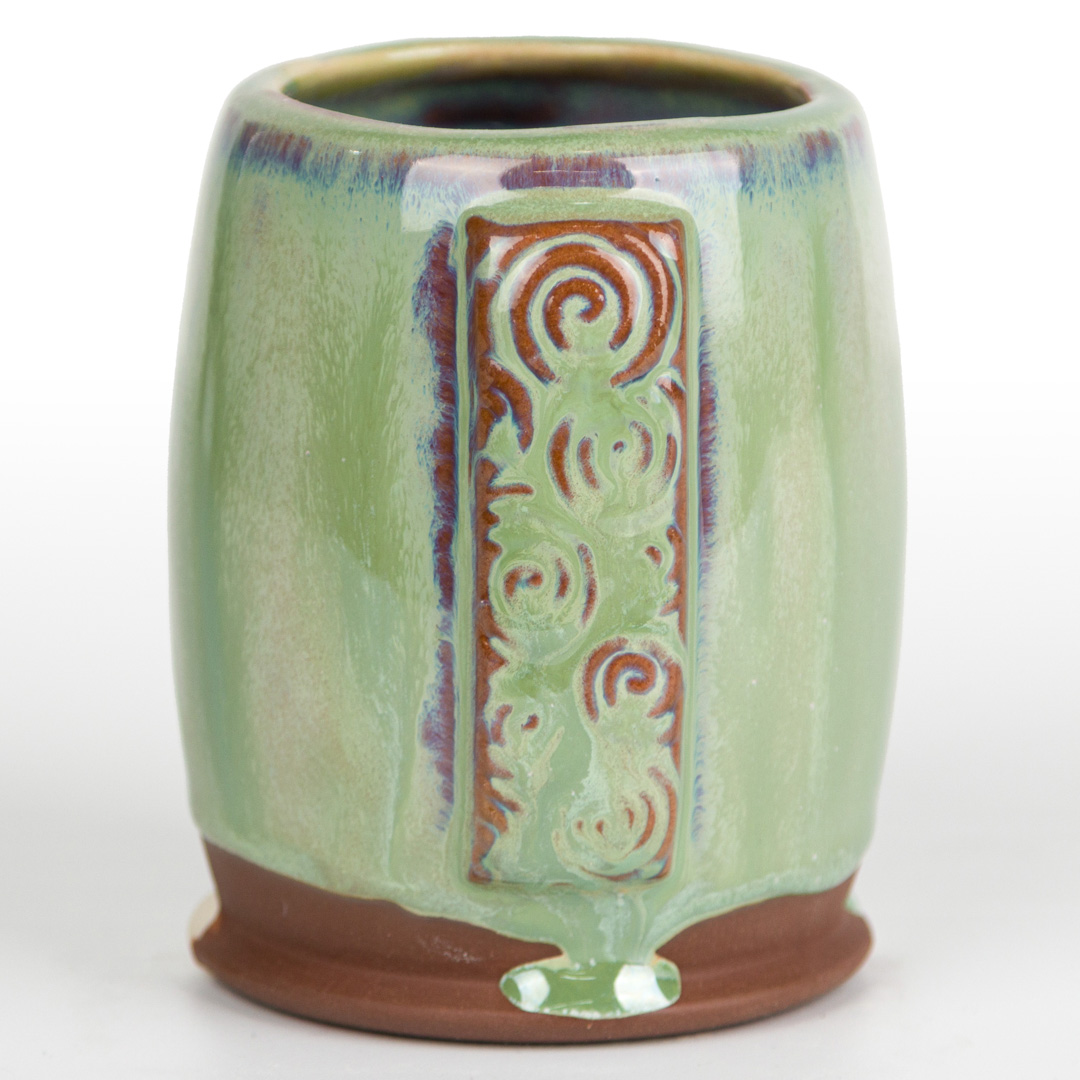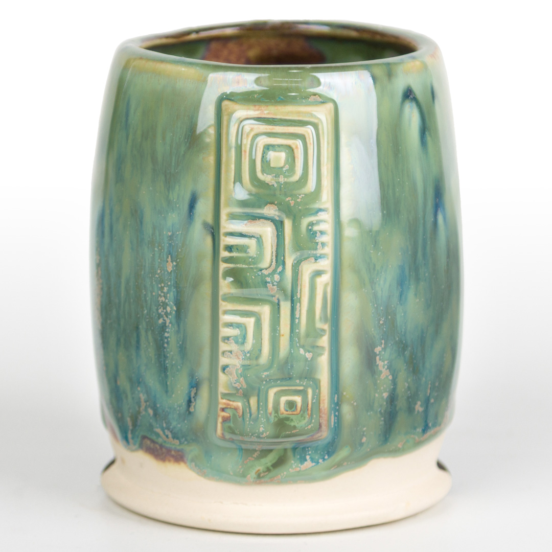 Technique was achieved by brushing on two (2) layers of base glaze. Then apply two (2) layers of top glaze, letting glazes dry between coats.