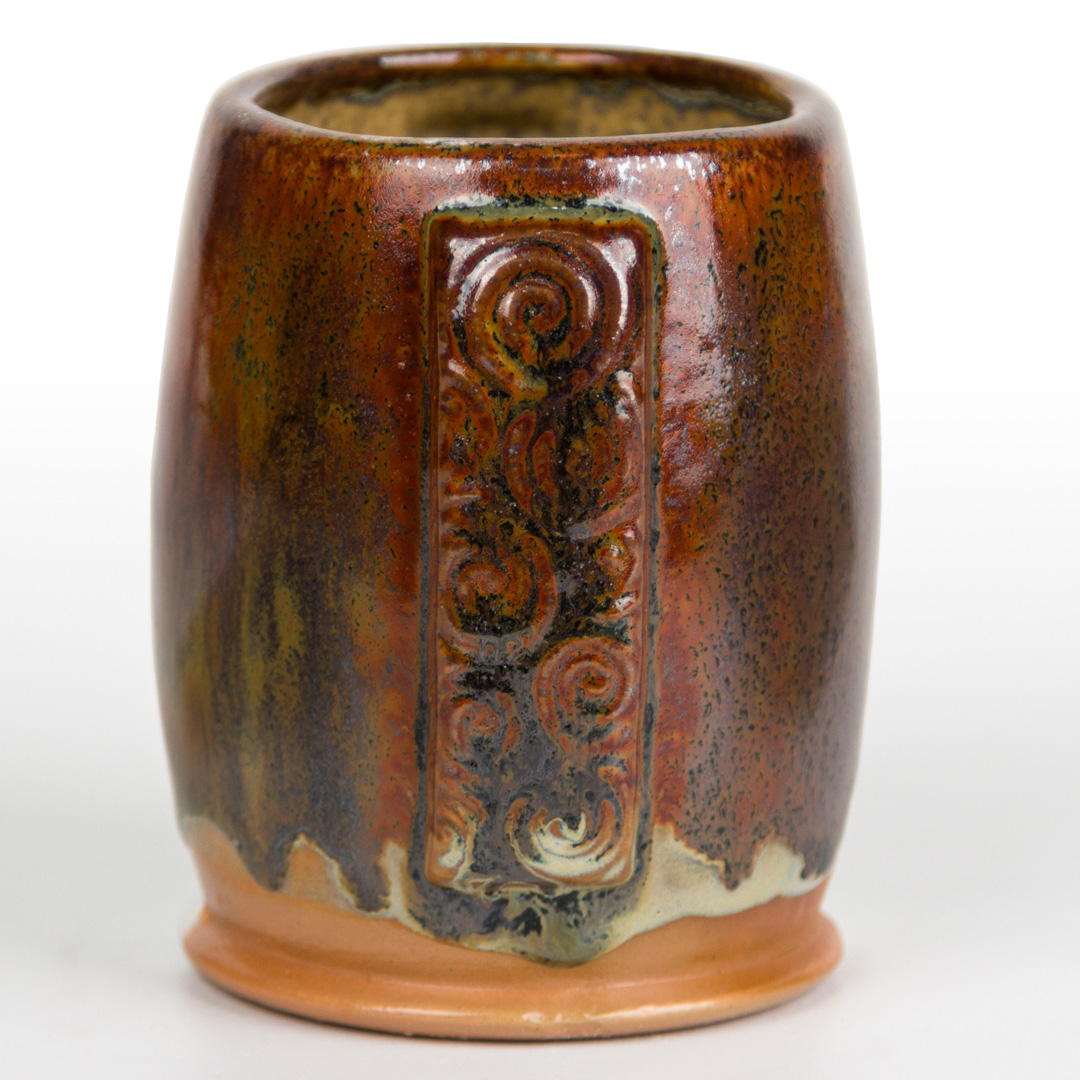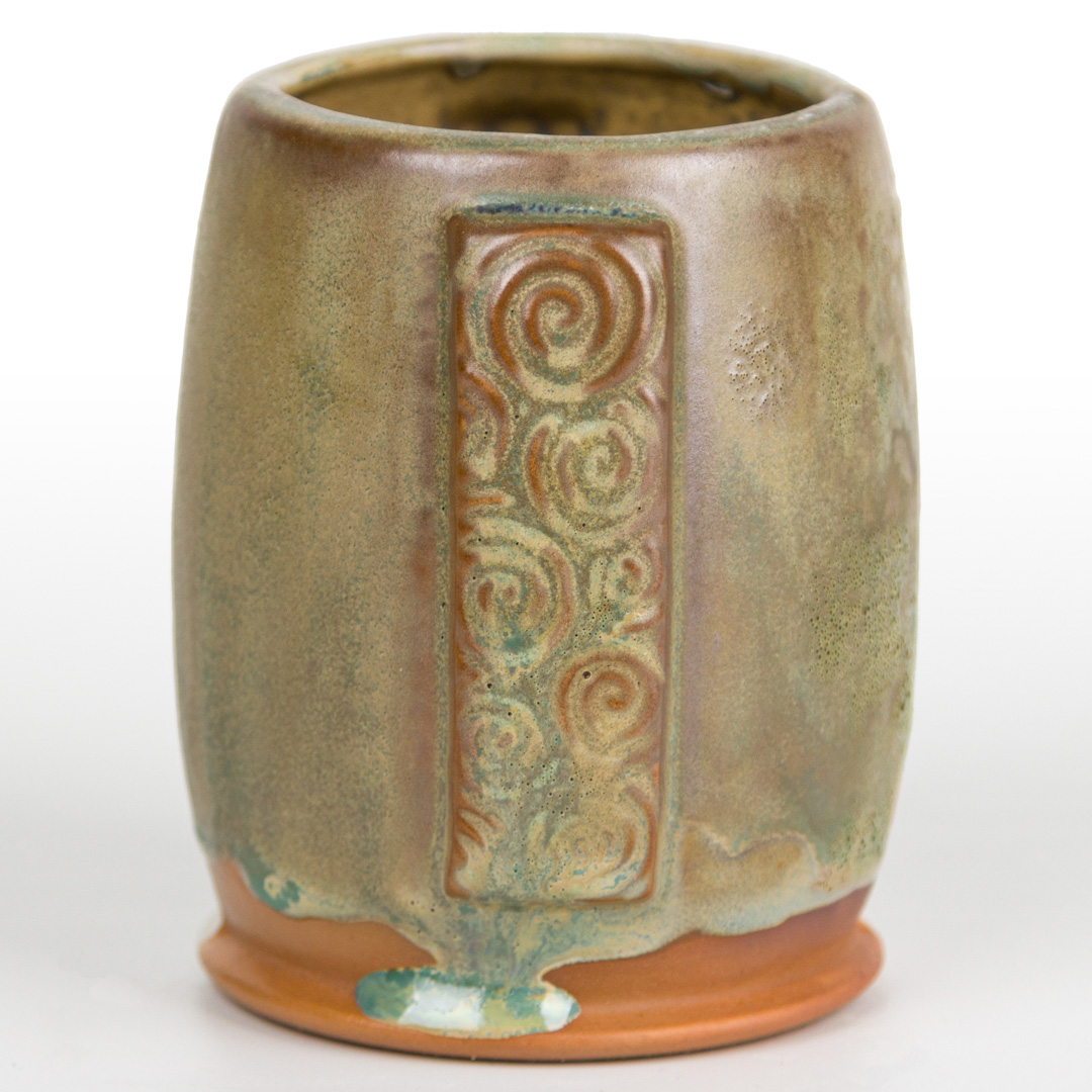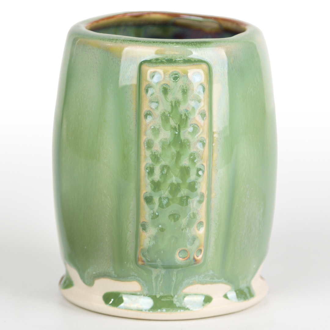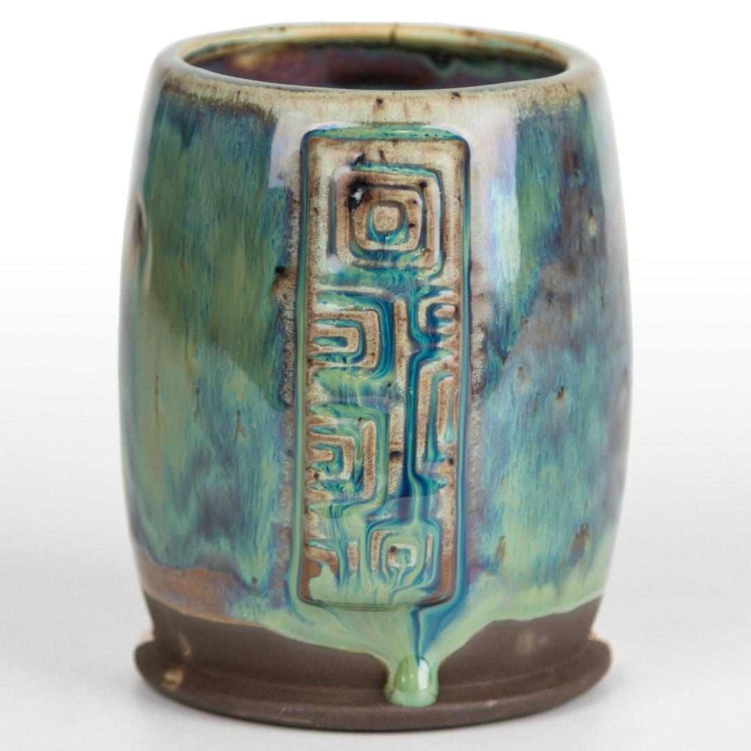 Technique was achieved by brushing on two (2) layers of base glaze. Then apply two (2) layers of top glaze, letting glazes dry between coats.