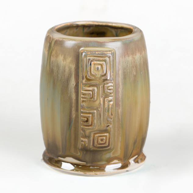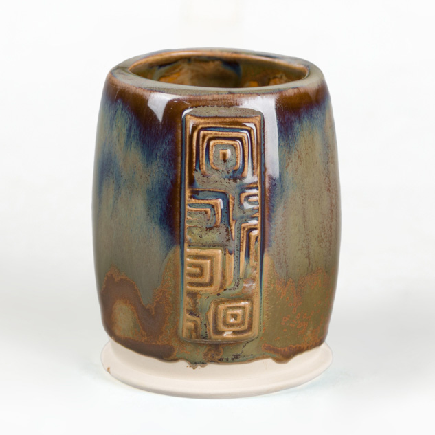 Technique was achieved by brushing on two (2) layers of base glaze. Then apply two (2) layers of top glaze, letting glazes dry between coats.