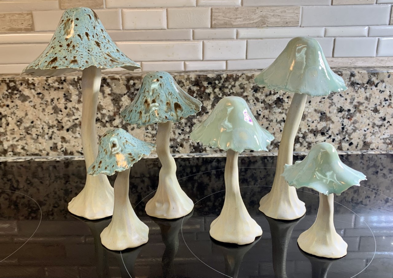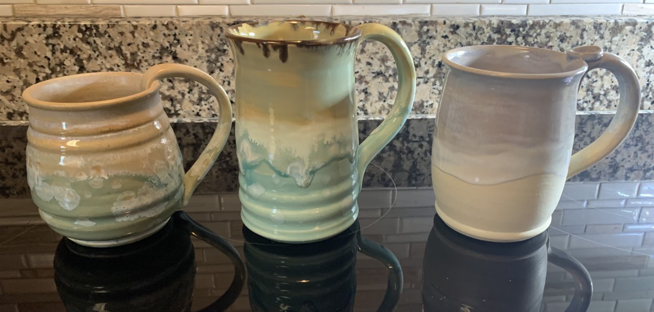 I have slowly taken over my husbands’ garage. I sit in a corner, on a milk crate covered in bubble wrap, topped with a pillow, to pull my pieces. I am surrounded by walls of tools and shelving for my wares and Glazes. Mayco Glazes. I have three 6-foot tables that are absolutely covered with paint brushes, reject pieces, and glazes. Music is always in motion and although my studio may not be the cleanest, it is my special place.