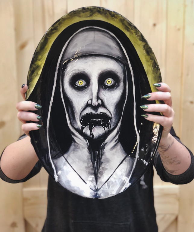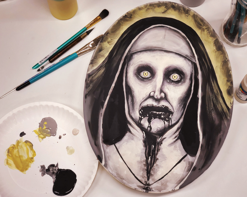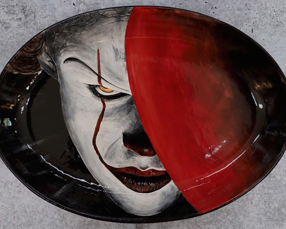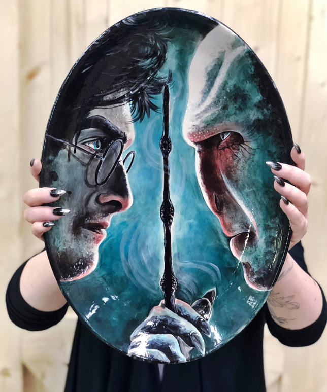 My theme is to paint what I want to paint! I enjoy tv shows and movies that are dark so I tend to steer in that direction, but I recently painted a Dumbo plate because he was too cute not to so…