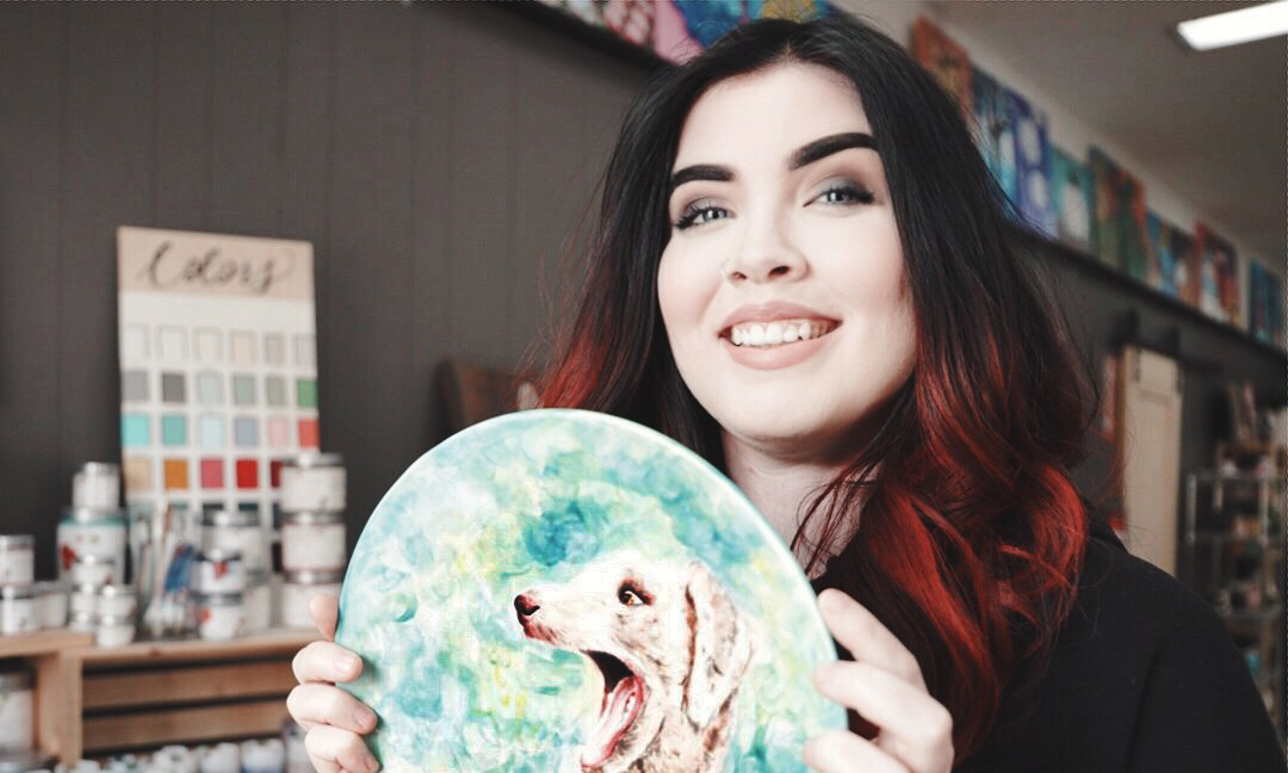 My name is Kaitlyn Mugg, and I am an artist based in Washington, Illinois. I was born and raised in Redlands, California. While majoring in art at Eureka college, my mom and I started a paint and sip studio in Washington called Art at the Bodega. As the business grew, we expanded into a paint your own pottery studio. As well as running the studio, I’m also busy doing work for Industry Brewery, a local craft beer brewery, where I design labels for their beers as well as logos for their brand.