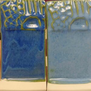 March 3, 2022: It has come to our attention that lot #2201027 of SW-100 Blue Surf and SW-115 Midnight Rain pints contain incorrect pigments resulting in a lighter fired color than our standards. See photo below; left is the correct color, right is incorrect.