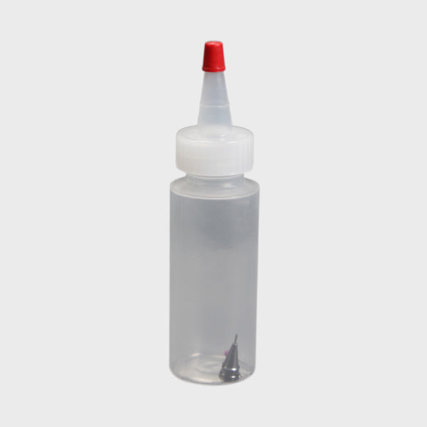 Comes with 2 oz bottle, metal writer tip, plastic detailer tip and cap.