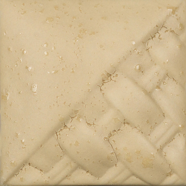 Cone 06 oxidation (large photo): Golden Sand is an off-white matte underglaze base with tiny tan crystals that fire glossy.