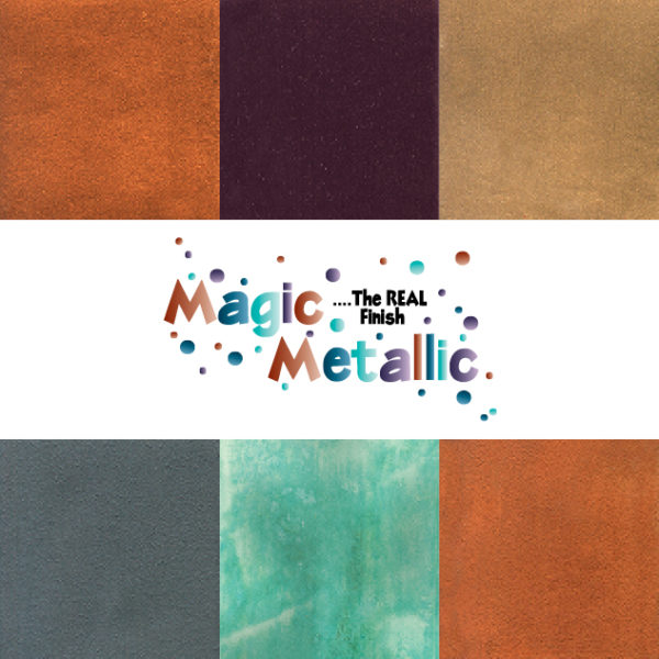 Magic Metallics™ are water-based acrylics that contain ground metal particles. Magic Metallics™ can be applied to almost any paintable surface: glass, wood, fabric, Styrofoam, paper, ceramic, etc. When dry, the surface will appear and feel like a metal surface.