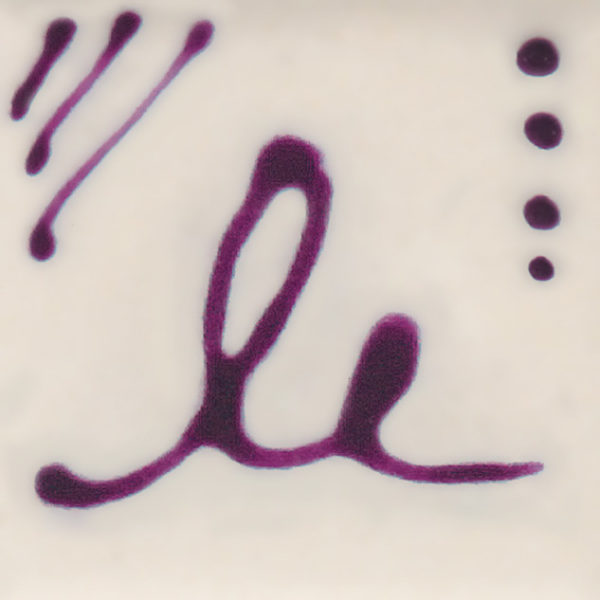 Cone 06 oxidation (large photo): Use this versatile product to create purple fine detail with lines, dots, and letters.