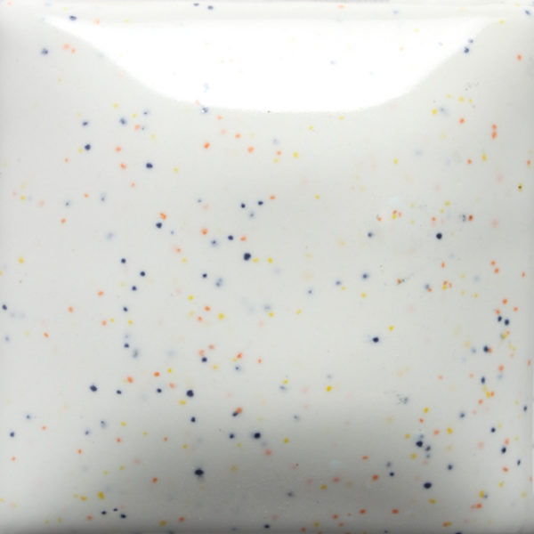 Cone 06 oxidation (larger image): Speckled Cotton Tail is a heavily pigmented, viscous Stroke & Coat® glaze with yellow, orange and blue specks that can be used for brush strokes or opaque coverage. One coat will create a translucent finish with subsequent coats adding opacity. We suggest two to three coats for full opacity and all over coverage. Will fire to a gloss finish without clear glaze.