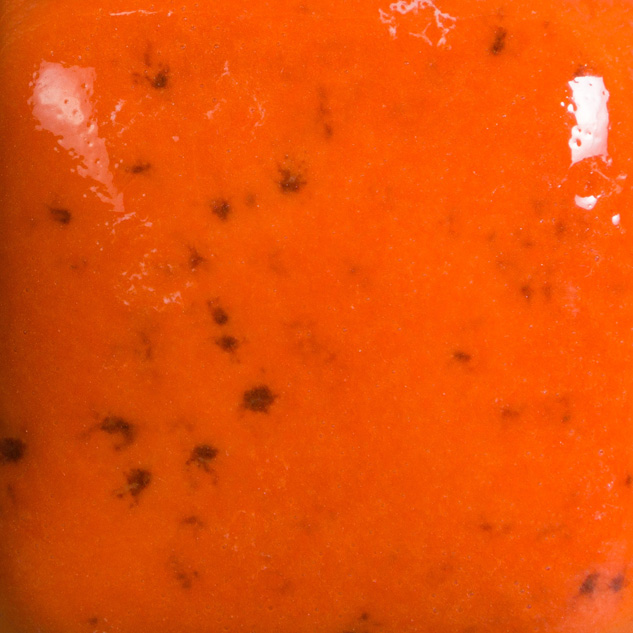 Cone 06 oxidation (larger image): Speckled Orange-A-Peel is a heavily pigmented, viscous Stroke & Coat® glaze with white and brown specks that can be used for brush strokes or opaque coverage. One coat will create a translucent finish with subsequent coats adding opacity. We suggest two to three coats for full opacity and all over coverage. Will fire to a gloss finish without clear glaze.