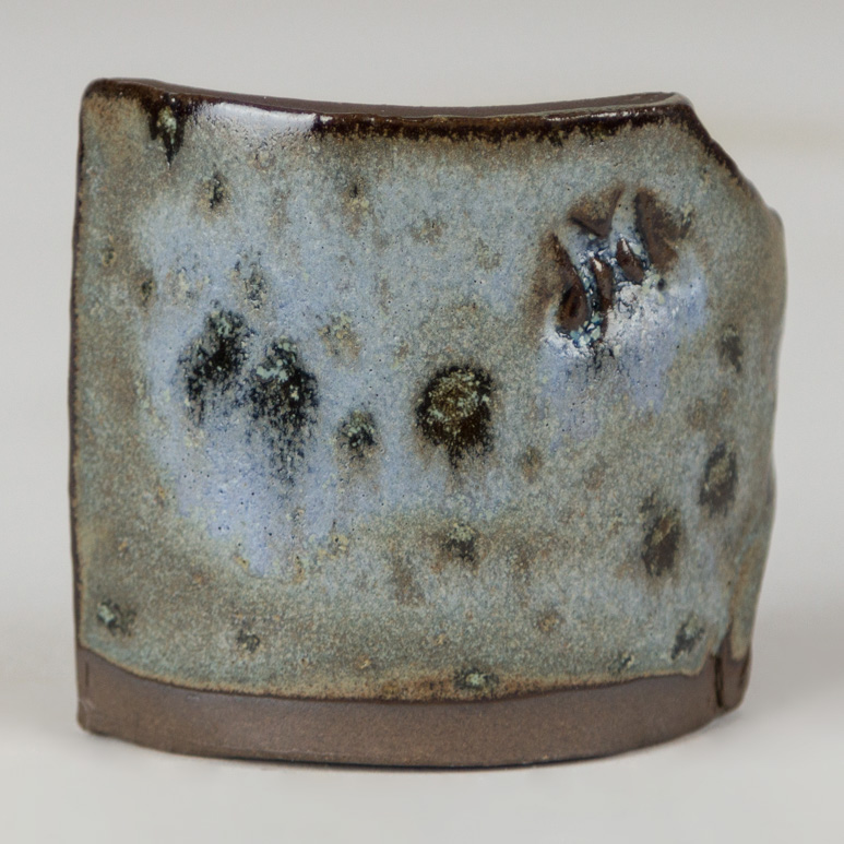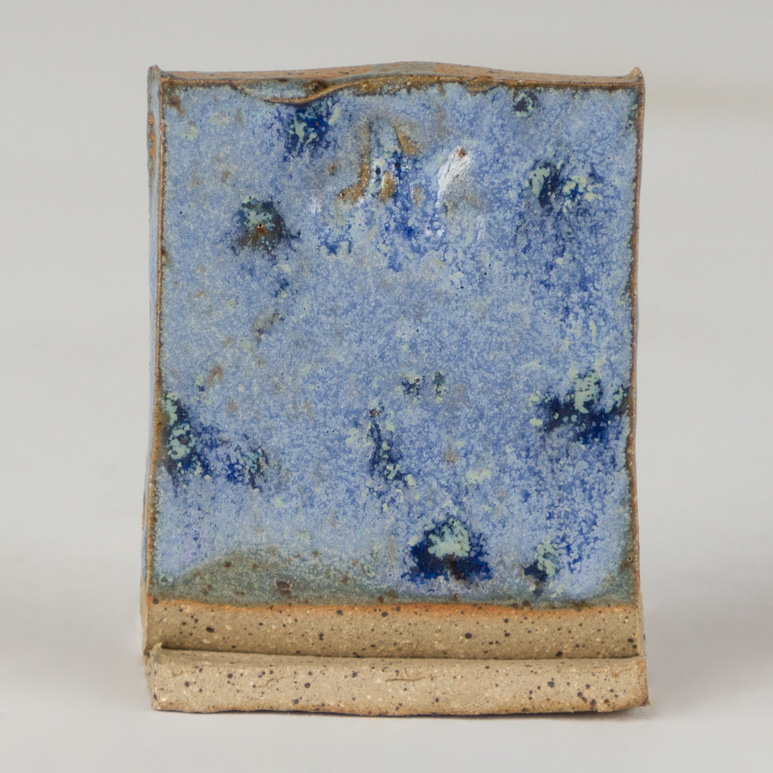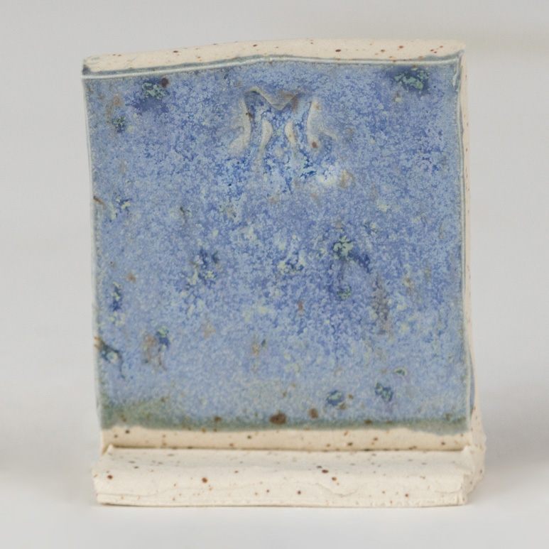 Cone 10 reduction (smaller image): Semi-gloss finish with variegated blue/light blue and crystals.