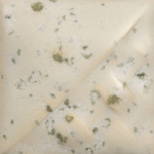 Cone 6: Sea Salt is a white matte glaze that contains a sage green crystal. As the crystal melts, green blooms appear in the glaze, producing a foamy, textured fired finish.
