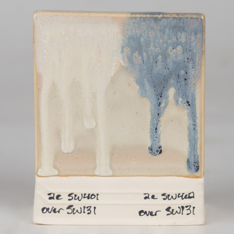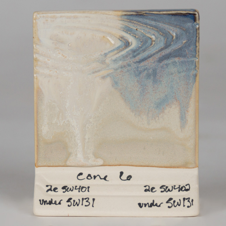 Cone 6 oxidation (larger image): Birch is a creamy opaque off-white glaze that breaks brown.