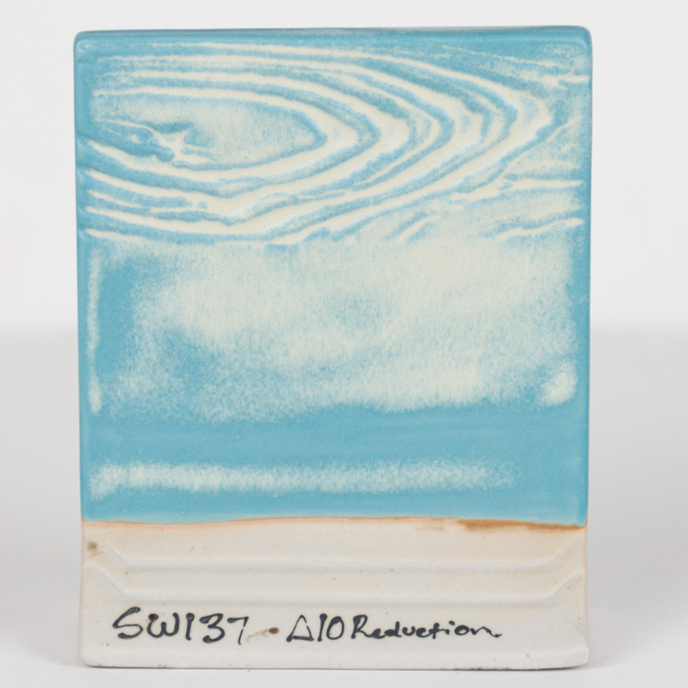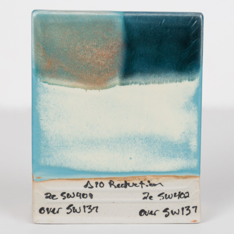 Chips shown are fired flat on a white clay body fired to cone 6 oxidation and cone 10 reduction. The choice of clay body, the thickness of glaze application, the firing process, and temperature will affect the fired results.