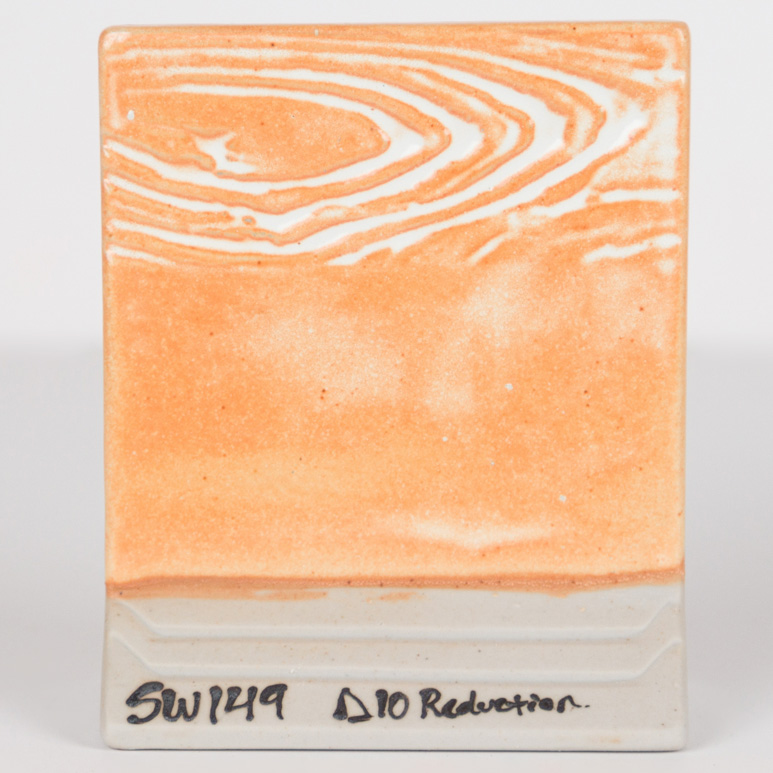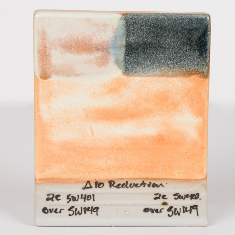 Chips shown are fired flat on a white clay body fired to cone 6 oxidation and cone 10 reduction. The choice of clay body, the thickness of glaze application, the firing process, and temperature will affect the fired results.