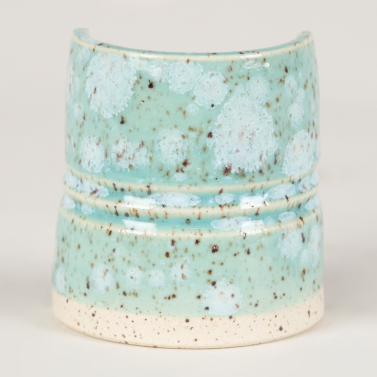 Cone 6 oxidation (larger image): Celadon Bloom is a turquoise semi-transparent gloss glaze that contains a white crystal.
