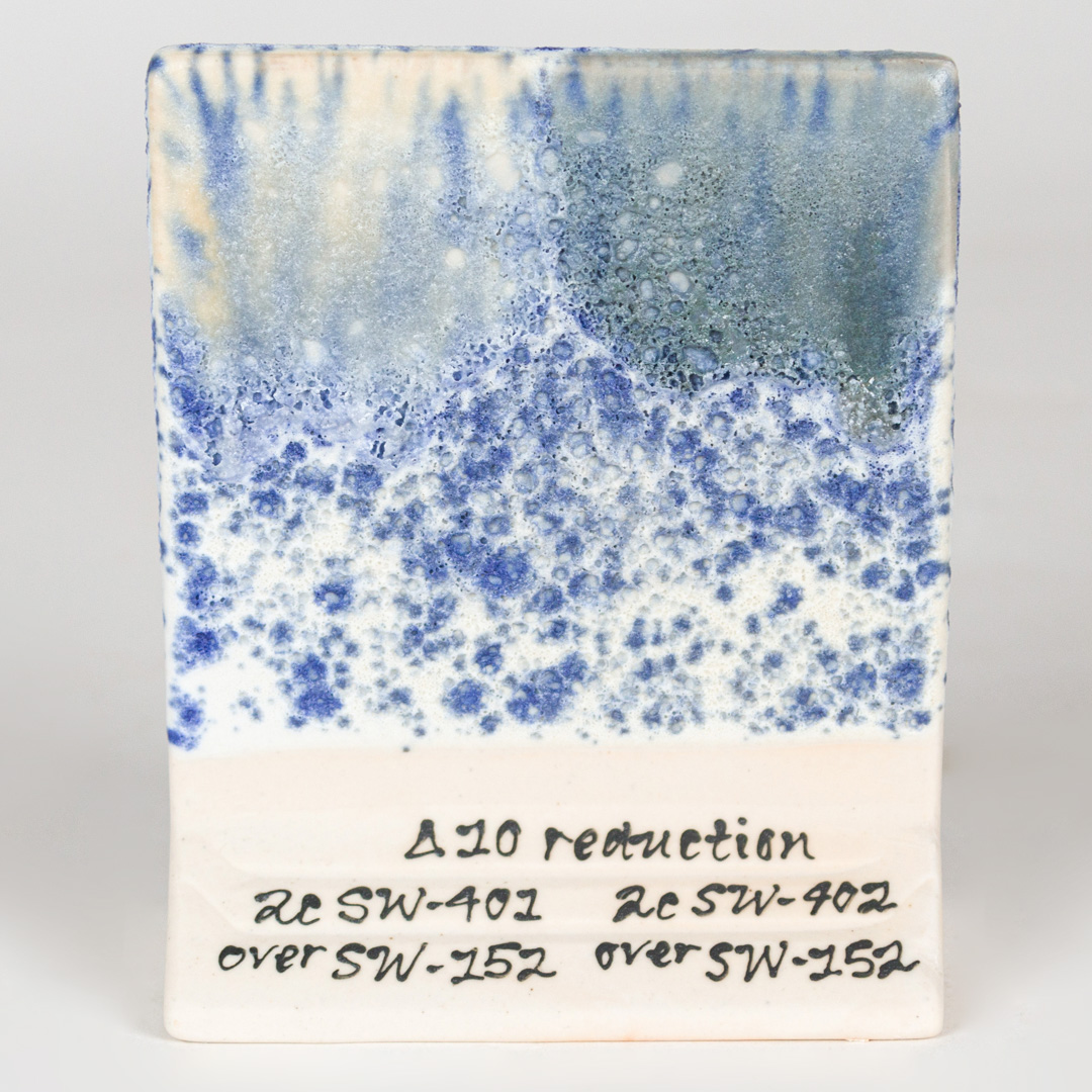TIP: SW-141 White Matte is the base glaze. For a lighter crystal effect, you may try applying two coats of SW-141 White Matte with a third coat of SW-152 Blue Splatterware.