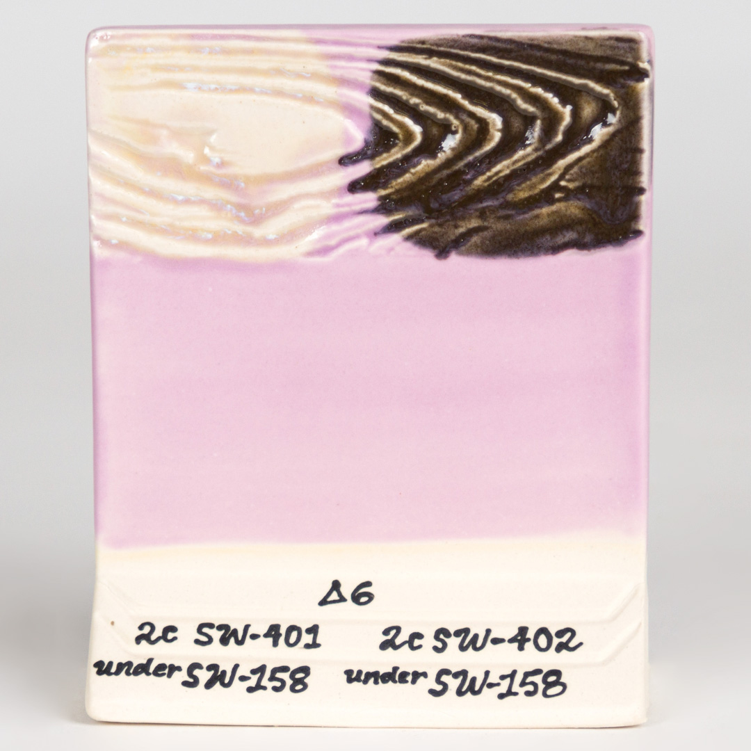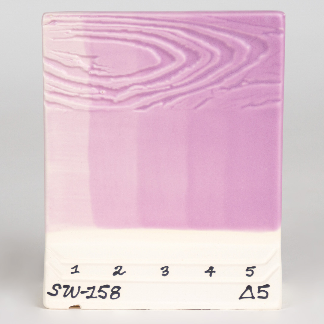 Cone 6: Lilac Matte is a semi-opaque matte lilac glaze. The glaze will break over surface textures: the more pronounced the surface texture, the more the glaze will pool around these textures. The glaze will create darker areas where it pools.