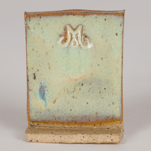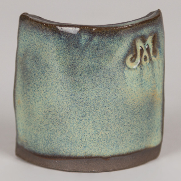 Cone 6 oxidation (larger image): Sand & Sea is a semi-opaque gloss glaze that displays shades of light green and gold. The variation of glaze depends on application. The thicker the application, the more homogenous the color will be. The glaze will break translucent where thinner and pool darker around surface textures.
